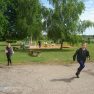 No sākuma bērni, sadaloties komandās “Ērgļi” un “Brīvdienas”, spēlēja spēli “Atrodi paslēpto mantu”. Atminot mīklu, bērni meklēja pagalmā paslēpto mantu. Pēdējā mīkla bija saistīta ar grāmatu plauktiem, bija jāatrod Nikolaja Nosova un Māra Runguļa grāmatas. Bērni ļoti ātri minēja mīklas, labi orientējās apkārtnē. Viņi uzzināja daudz jaunus grāmatu nosaukumus. Par katru pareizo atbildi komanda saņēma konfekti. Uzvarēja komanda “Brīvdienas”.