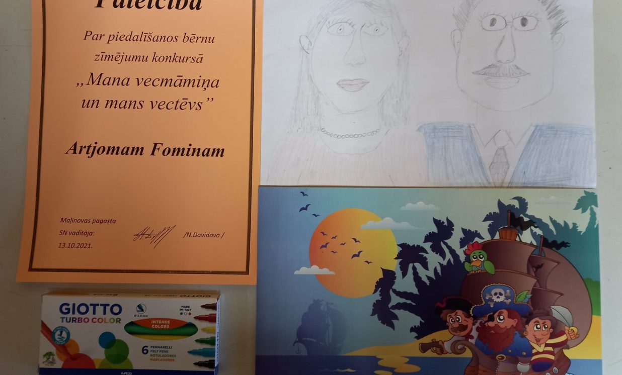Oktobrī Maļinovas pagasta Saieta namā notika zīmējumu konkurss “Mana vecmāmiņa un mans vectēvs”. Konkursā savus darbiņus iesniedza Fjodors Gurkins, Emilija Žare, Anastasija Žare, Maksims Ivanovs, Artjoms Fomins, Denis Zadirko, Dmitrijs Semjonovs, Vladislavs Terentjevs. Katrs uzzīmēja pa vienam zīmējumam. Zīmējumi tika sazīmēti ar krāsainiem zīmuļiem, flomasteriem un vaska krītiņiem. Visi dalībnieki saņēma pateicības un dāvanas. Katrs iedzīvotājs var aplūkot bērnu mākslas darbus izstādē Saieta nama logos. Paldies visiem dalībniekiem par atsaucību un dalību konkursā.
