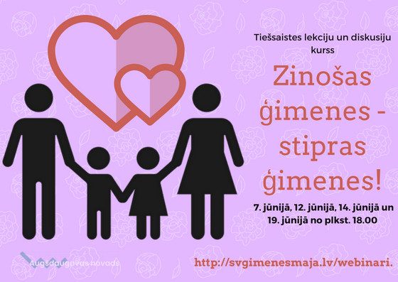 No 2018. gada 7. jūnija visiem interesentiem būs iespēja tiešsaistē vērot bezmaksas lekciju un diskusiju kursu “Zinošas ģimenes - stipras ģimenes!”, kur lektori kopā ar dažādu nozaru ekspertiem diskutēs par tādām ģimenei un vecākiem aktuālām tēmām, kā finanšu pratība, laulības tiesiskie aspekti, ģimenes attiecību veidošana, psiholoģiskie un ētiskie aspekti u.c.