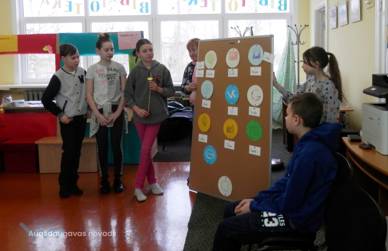 Lai bērnudārza audzēkņiem bibliotekārā stunda būtu saistoša, medijpratības nodarbībā pusaudži izspēlēja situācijas, kā bērnu vidē notiek viedtālruņu lietošana, kādi pārpratumi un negadījumi rodas, ja aizmirst par labu uzvedību un drošību tīmeklī.