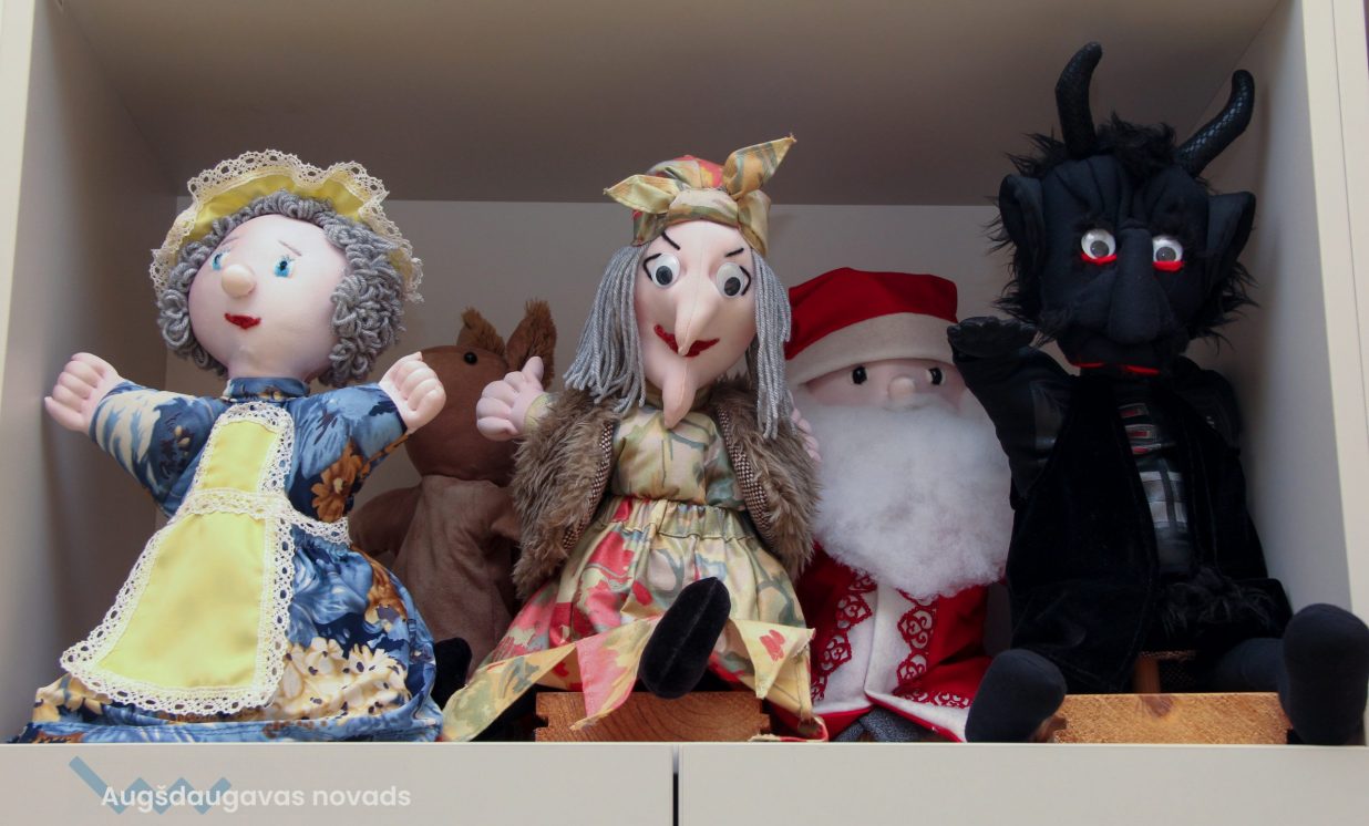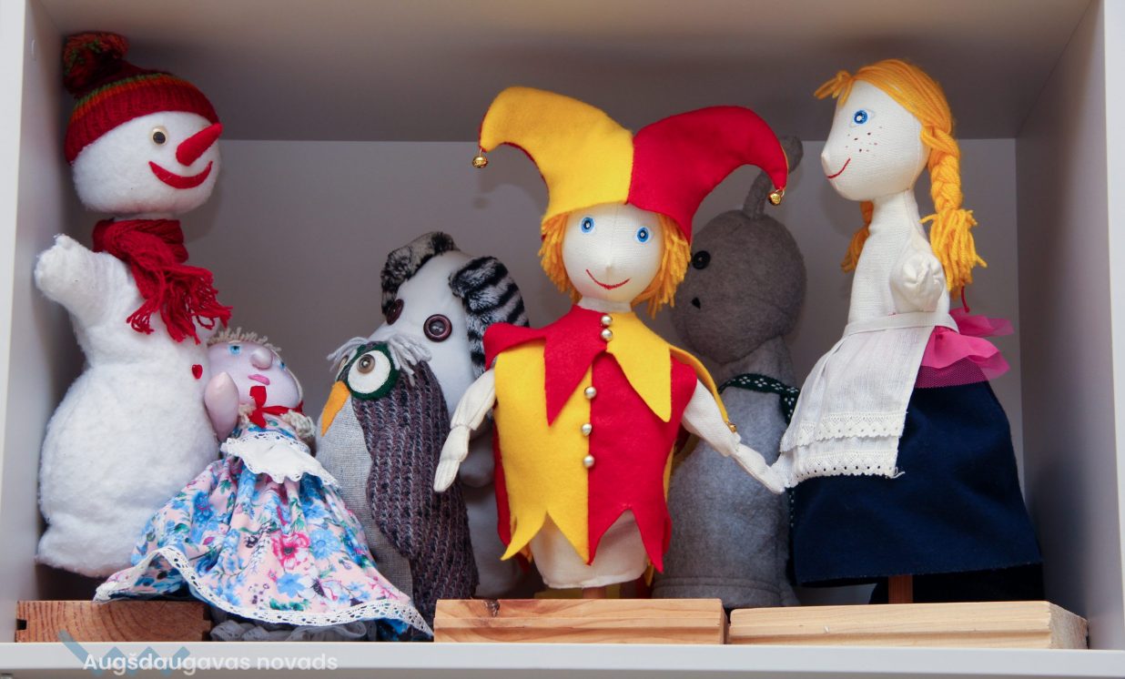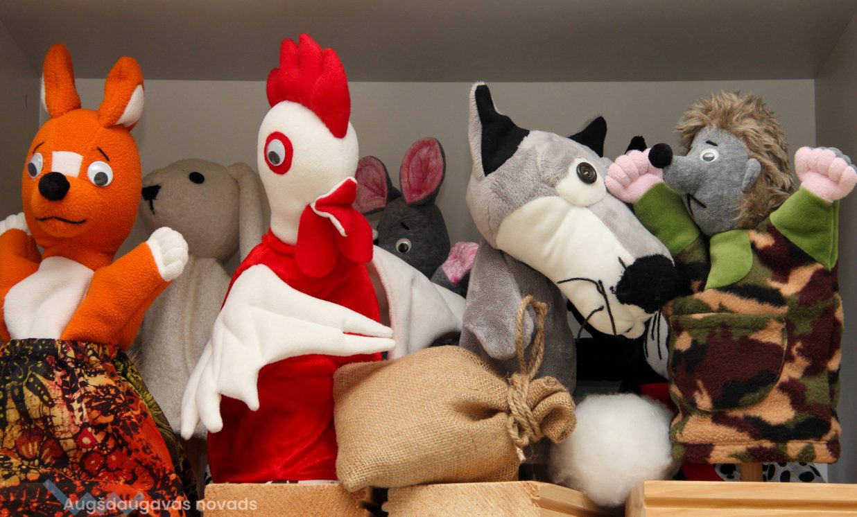 Jau kādu laiku bibliotēkai ir arī savs leļļu teātris. Sākotnējās bailes uzstāties uz skatuves bērniem pāriet ļoti ātri, apzinoties, ka viņus pašus pat neredzēs, vien dzirdēs. Aiga sarakstījusi scenārijus kādām 10 lugām, pamatā izmantojot latviešu autoru darbus. Pirmā bijusi pēc Margaritas Stārastes pasakas “Rūķis Svečulējējs” motīviem, ko bērni izrādīja Naujenes pamatskolā. Katra luga ir vien 10 minūtes gara, lai bērni nepagūst nogurt un nezaudē interesi. “Svarīgi ir atrast galveno varoni, kas izturēs visu lugu. Cits priecāsies pateikt tikai vienu frāzi, bet kāda meitene visu lugu turēja rokā ziediņu un bija laimīga par to pašu,” saka Aiga. Pašlaik viņa ir jauna aktieru sastāva meklējumos, jo iepriekšējais jau izaudzis.