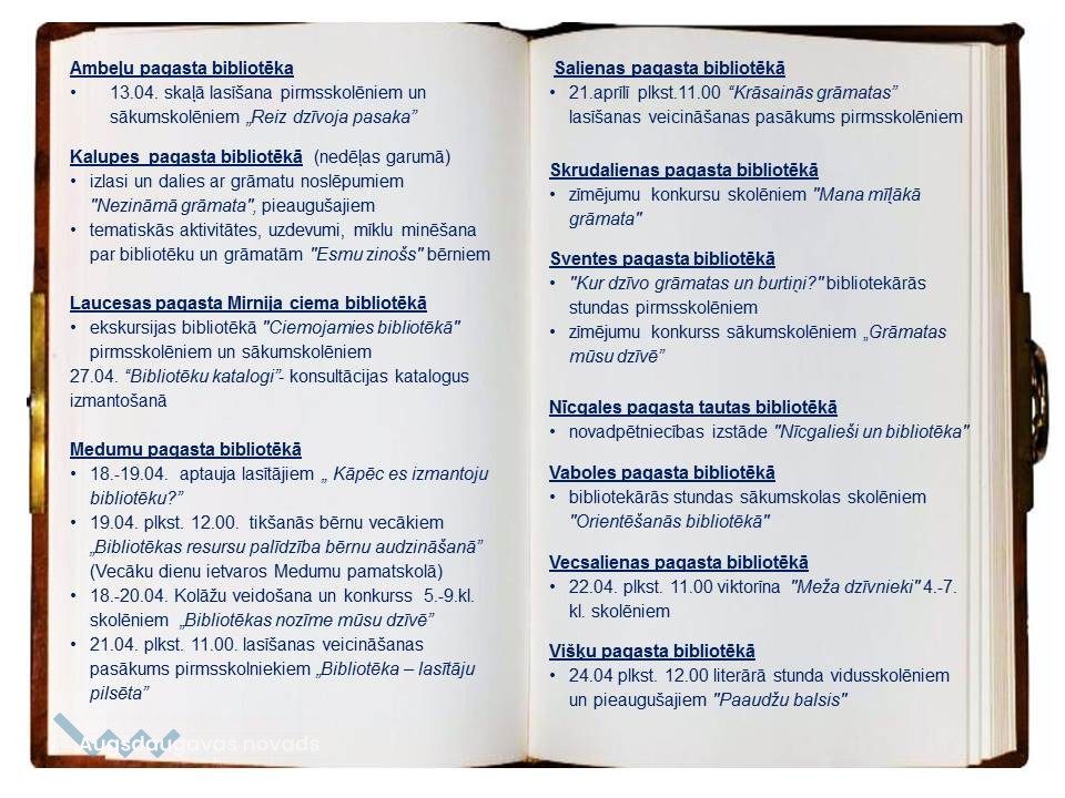 Šogad Bibliotēku nedēļa Latvijā norisināsies no 17. līdz 23. aprīlim. Tās vadmotīvs - Bibliotēkas un sabiedrība: vienotas kopīgiem mērķiem. Arī Daugavpils novada bibliotēkas piedāvā vairākus pasākumus un aicina tajos piedalīties visus interesentus. Tāpat aicinām savus lasītājus dalīties sociālajos tīklos ar stāstiem par to, kāpēc viņi mīl savu bibliotēku, izmantojot tēmturi #manabiblioteka.