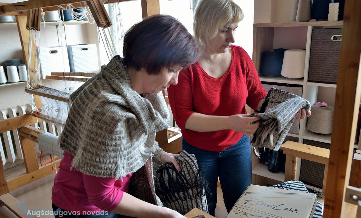 Pērnā gada novembrī Naujenes kultūras centrs kļuva par pagaidu mājām brīnišķīgai grīdas celiņu un oriģinālu plecu lakatu un šaļļu izstādei. “Raxtu sētas” pārstāves stāsta, cik ļoti svarīgi ir iesaistīt aušanas procesā arī citus cilvēkus, kuru grib iemācīties šo seno amatu prasmi.