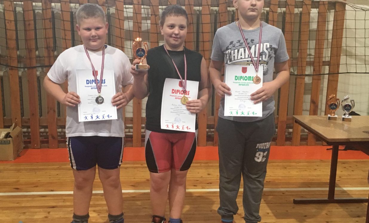 - Andrejs Jermaks (53kg) Naujenes pagasts, - Aleksejs Marenkovs (47kg) Skrudalienas pagasts, - Ņikita Bobiļevs (42kg) Demenes pagasts.