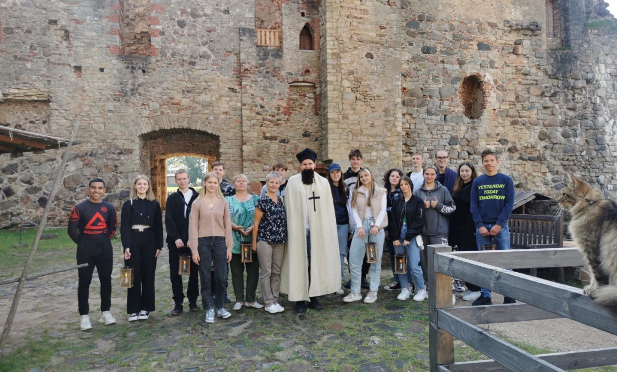 Ceļojums turpinājās pagātnē uz Cēsu viduslaiku pili, kur ieskatījāmies tās 800 gadu senās vēstures noslēpumos un uzzinājām interesantus faktus par pils iemītniekiem- Zobenbrāļu ordeņa bruņiniekiem.