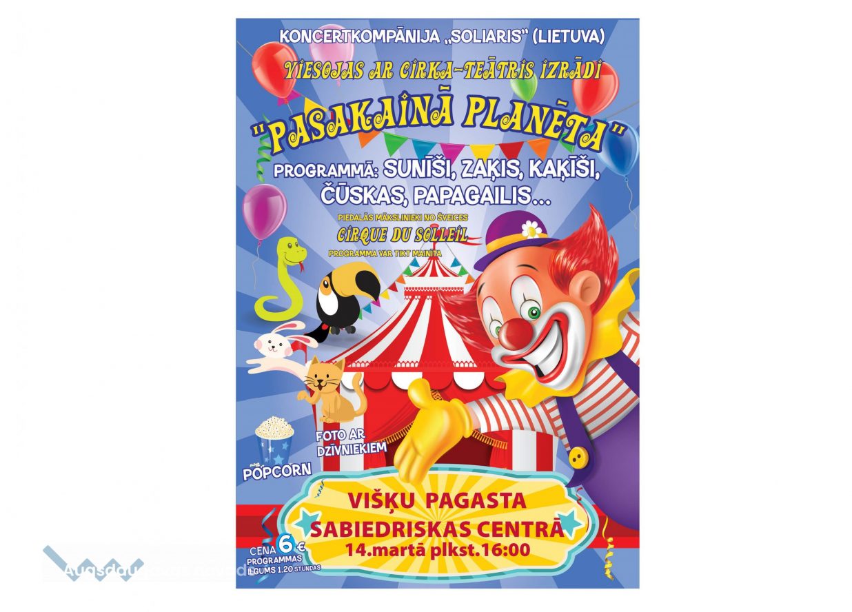 14. martā plkst. 16.00 Višķu pagasta Sabiedriskā centra zālē ( Višķu tehnikumā) Lietuvas koncertkompānija “SOLIARIS” viesosies ar cirka – teātra izrādi “Pasakainā planēta”.
