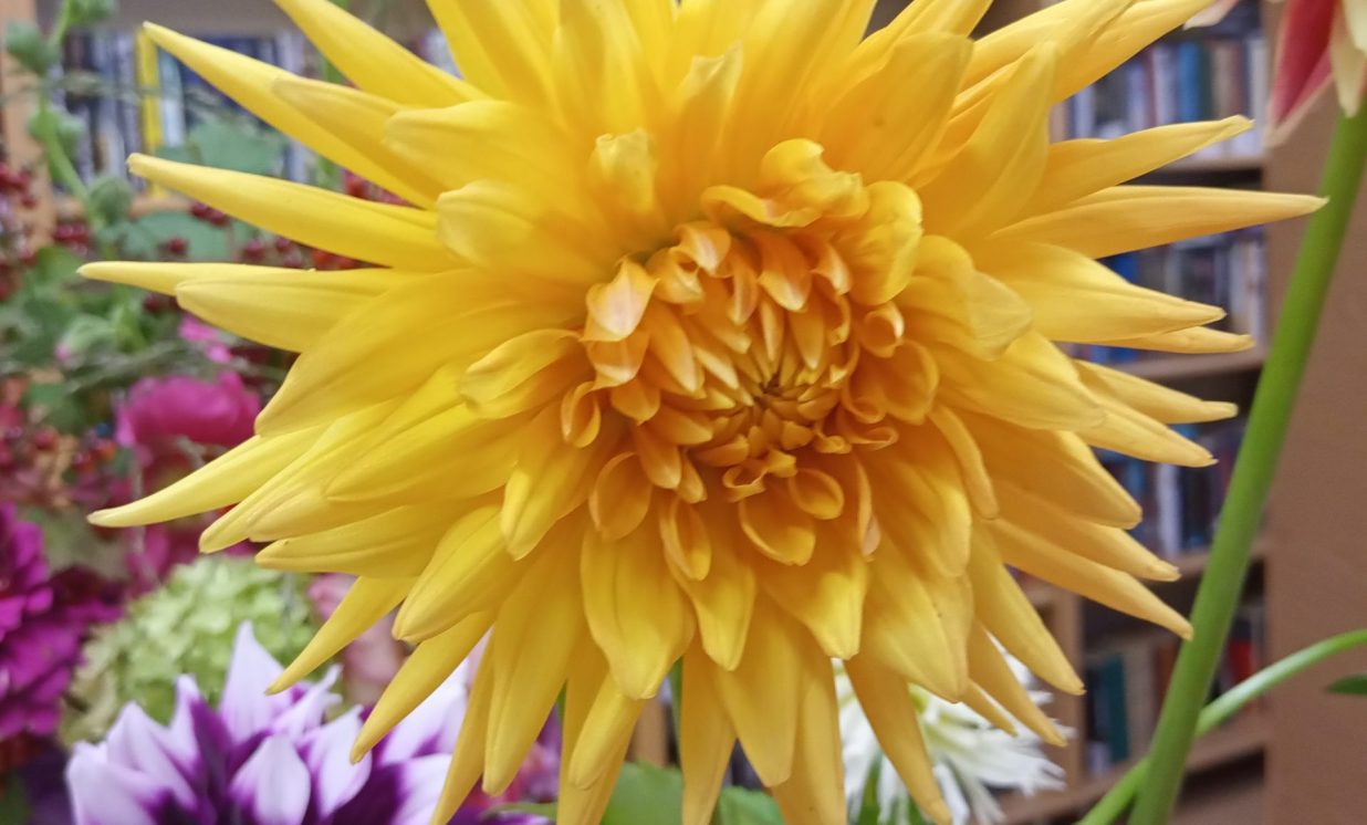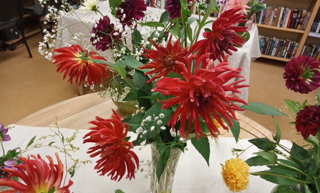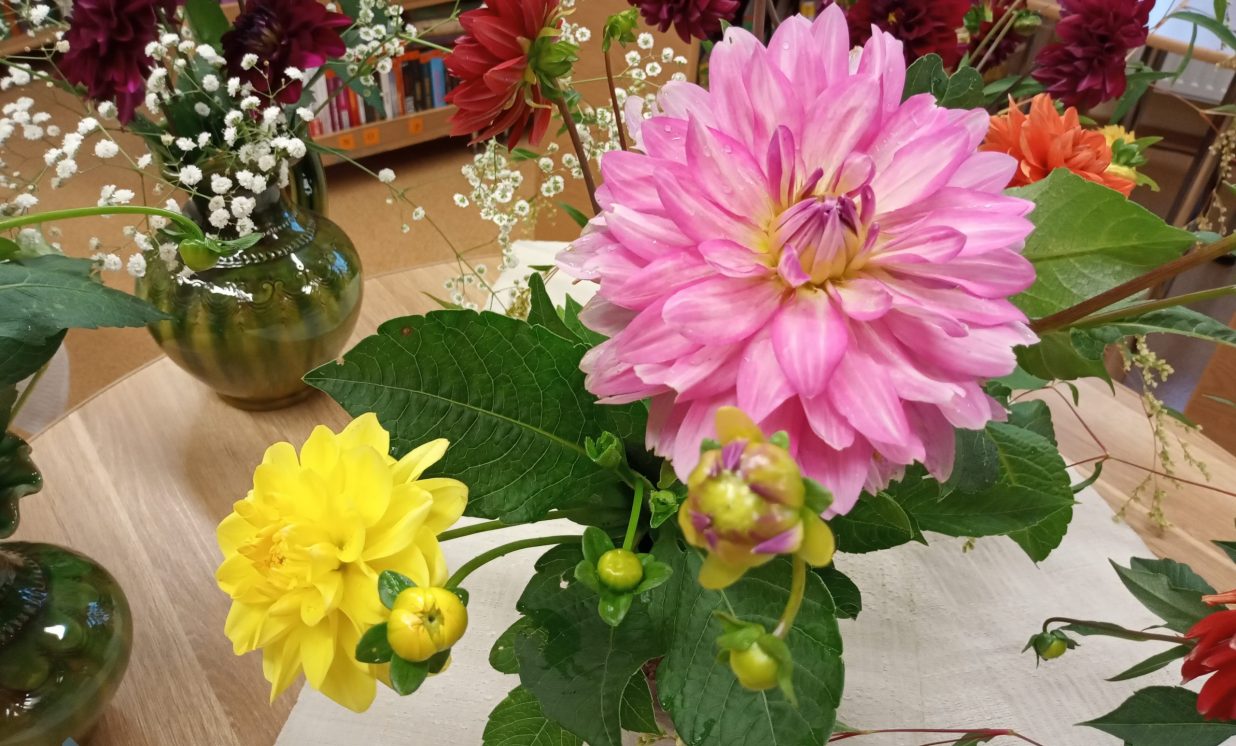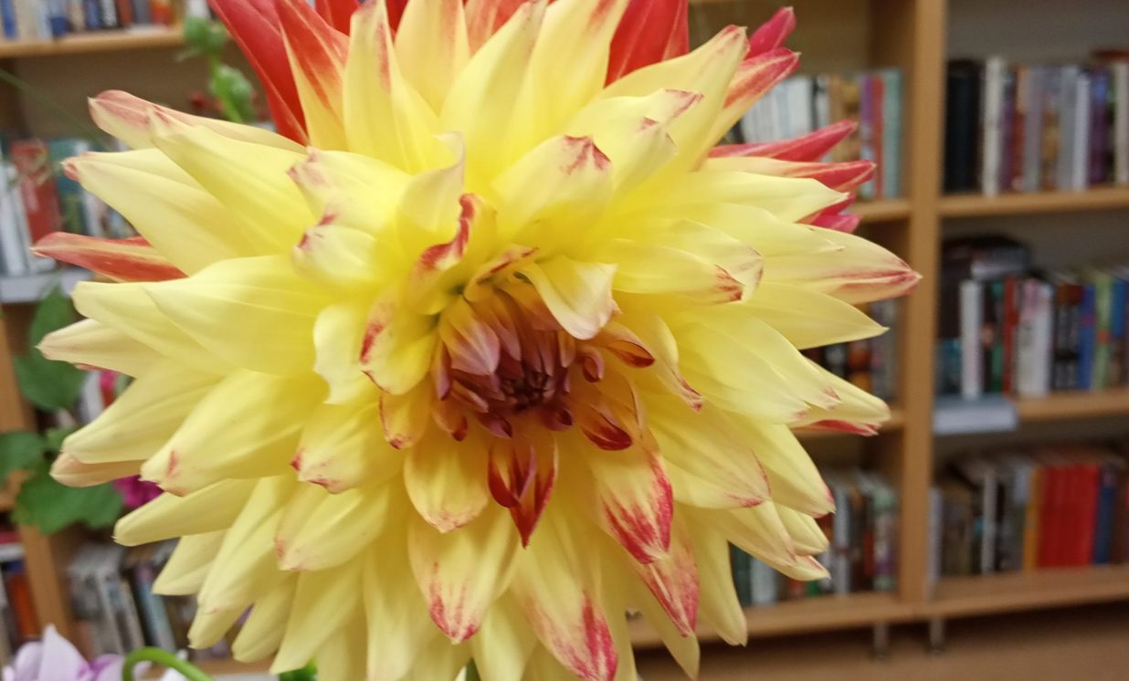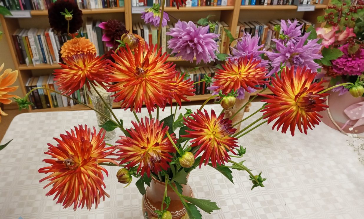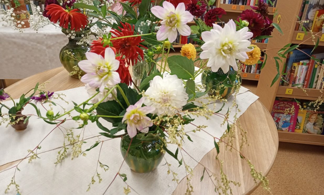 Es pateicos tev, mīļā, labā skola, Par rīta sauli, ko mums liki plaukstās: Mēs paņemam no tavas klases sola Sev līdz ar sauli sapņu zvaigznes augstās. (J.Osmanis) No 31.augusta Maļinovas pagasta bibliotēkā ir skatāma krāšņāko rudens ziedu – dāliju izstāde, kas veltīta pirmajai skolas dienai, skolotājiem un skolēniem. Lai veiksmīgs jaunais mācību gads, pilns radošuma, labām sekmēm, zinātkāriem skolēniem. Izstāde tapa pateicoties bibliotēkas lietotāju atsauksmei, sarūpēti 26 dažādu šķirņu dāliju ziedi, iespējams nofotogrāfēties starp dālijām. Paldies par skaistajām dālijām Natālijai Ančevskai, Ilonai Jefimovai, Žannai Sidorovai. Maļinovas pagasta bibliotēkas vadītāja Elvīra Kokina