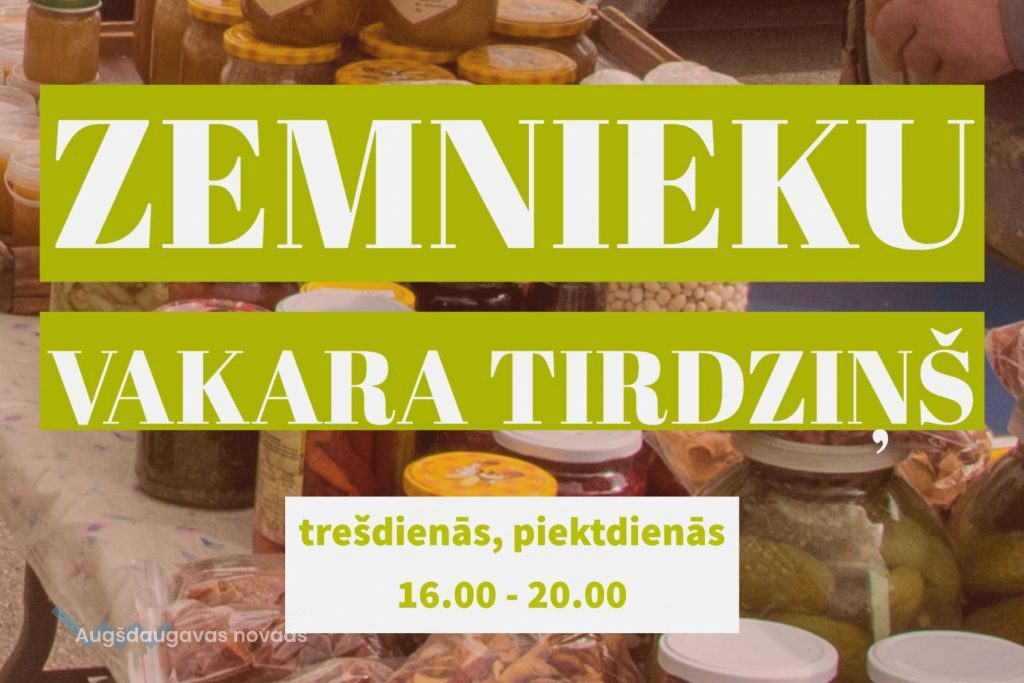Daugavpilī darbojas Augšdaugavas novada zemnieku vakara tirdziņš, kas gaida apmeklētājus katru trešdienu un piektdienu no pulksten 16.00 līdz 20.00 Alejas ielā Daugavpilī, posmā starp Maizes un Kandavas ielu.