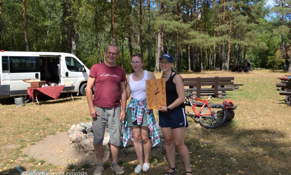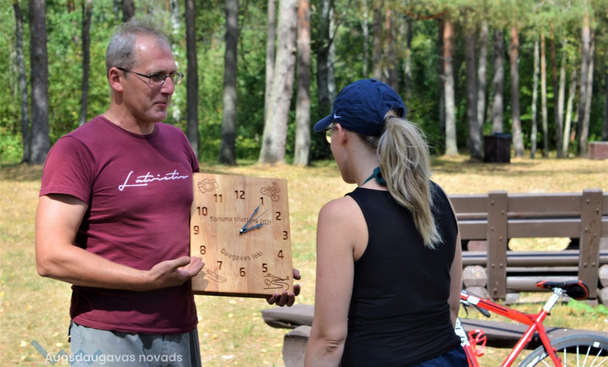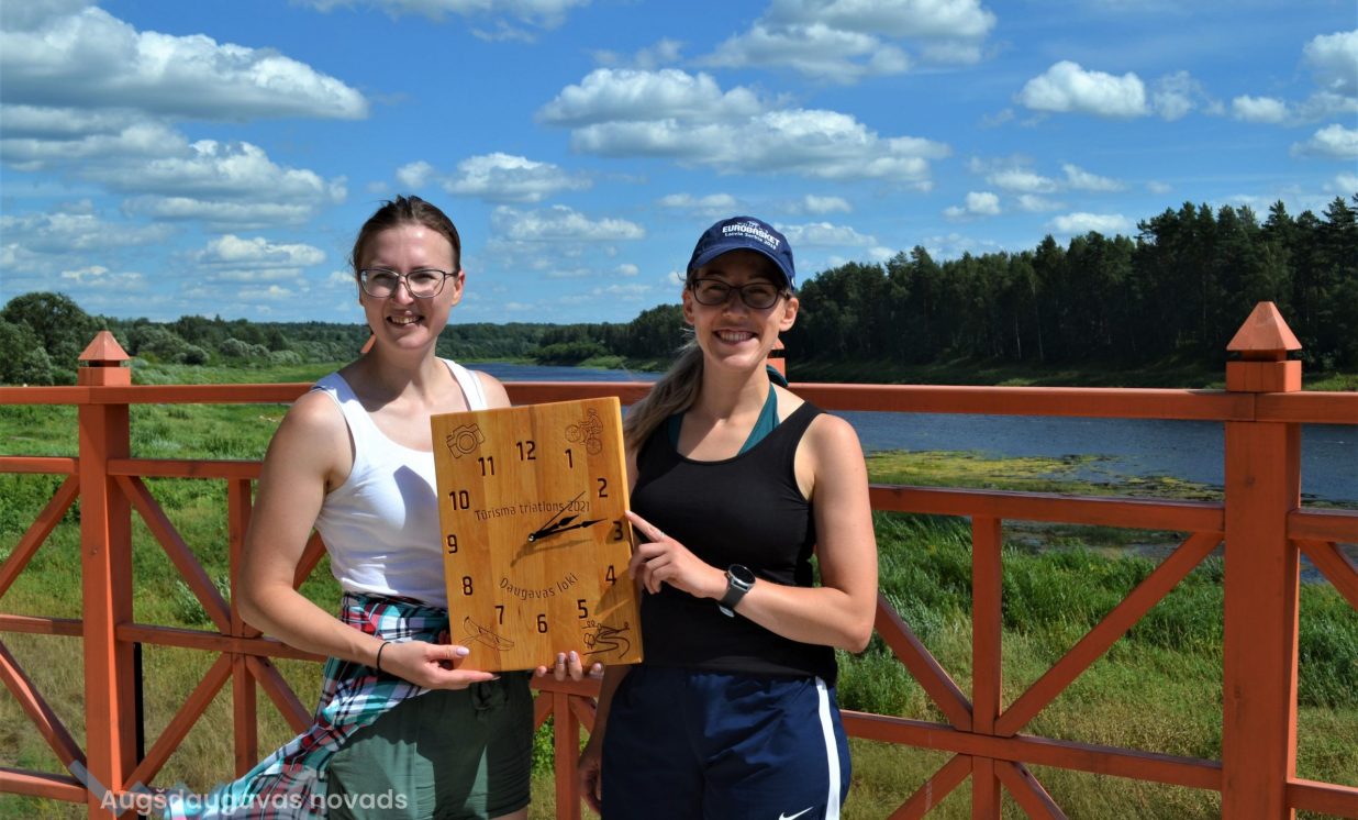 Priecēja saulainais laiks, un, neskatoties uz stipru pretvēju, laivojot pa Daugavu ar kajaku, visi dalībnieki lieliski tika galā ar uzdevumiem, un visi piedzīvojuma posmi tika veiksmīgi pārvarēti. Kopumā sešām komandām izdevās atrast un piefiksēt visus 12 kontrolpunktus, tāpēc no šīm komandām izlozes veidā par uzvarētāju tika pasludināta komanda “Ohaio”, kurā startēja Kristiāna Siliņa un Zanda Lisovska. Vēlreiz sirsnīgi sveicam meitenes ar godam nopelnītu uzvaru! Dalībnieces saņēma īpašu piemiņas balvu – stilizētu koka pulksteni, kuru izgatavoja darbnīca “Urtawood” Pilskalnes pagastā. Darbnīcas īpašnieki arī veiksmīgi piedalās tūrisma apritē, ir izveidojuši savu darinājumu veikalu, kā arī piedāvā personalizētu koka priekšmetu izgatavošanas meistarklases, koku atpazīšanas viktorīnas un ekskursijas pa darbnīcu.