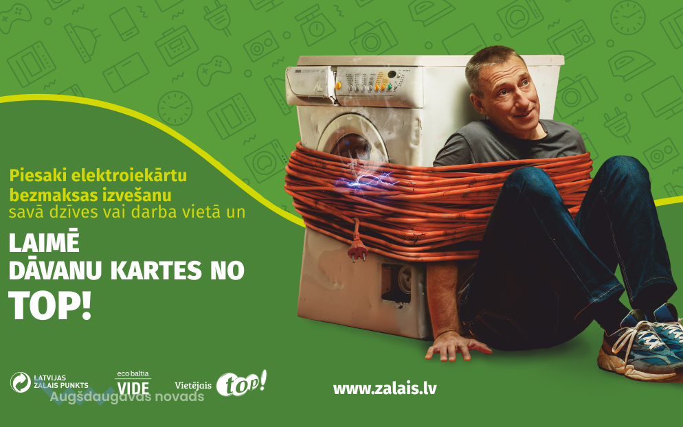 Latvijas Zaļais punkts sadarbībā ar vides apsaimniekošanas uzņēmumiem SIA “Eco Baltia vide” un veikaliem “Top!” šķirošanas kampaņā Vislatvijas “Elektronikas šķiratlons” aicina Daugavpils novada iedzīvotājus līdz 14. septembrim pieteikt nolietoto un vairs nevajadzīgo elektroiekārtu bezmaksas izvešanu no savām mājsaimniecībām vai uzņēmumiem. Piedaloties akcijā, ir iespēja laimēt noderīgas balvas – veikalu “Top!” dāvanu kartes 20 un 30 eiro vērtībā.