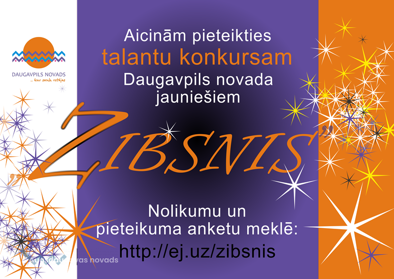 6. aprīlī plkst. 17.00, Daugavpils novada Kultūras centrā „Vārpa” (Dobeles iela 30, Daugavpils) norisināsies Talantu konkurss Daugavpils novada jauniešiem “Zibsnis”.