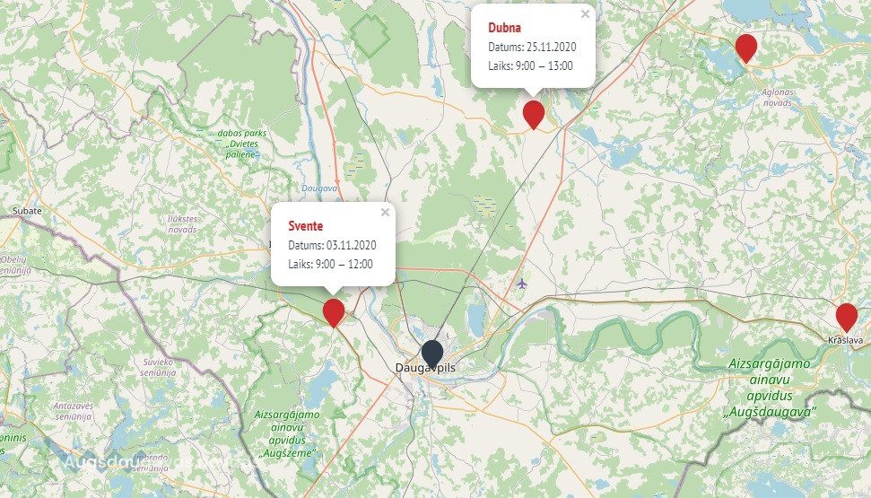 - 3. novembrī, no plkst. 9.00 - 12.00 asinis varēs nodot Sventē, Alejas ielā 13. - 25. novembrī, no plkst. 9.00 - 13.00 asinis varēs nodot Dubnā, Nākotnes ielā 1 a.