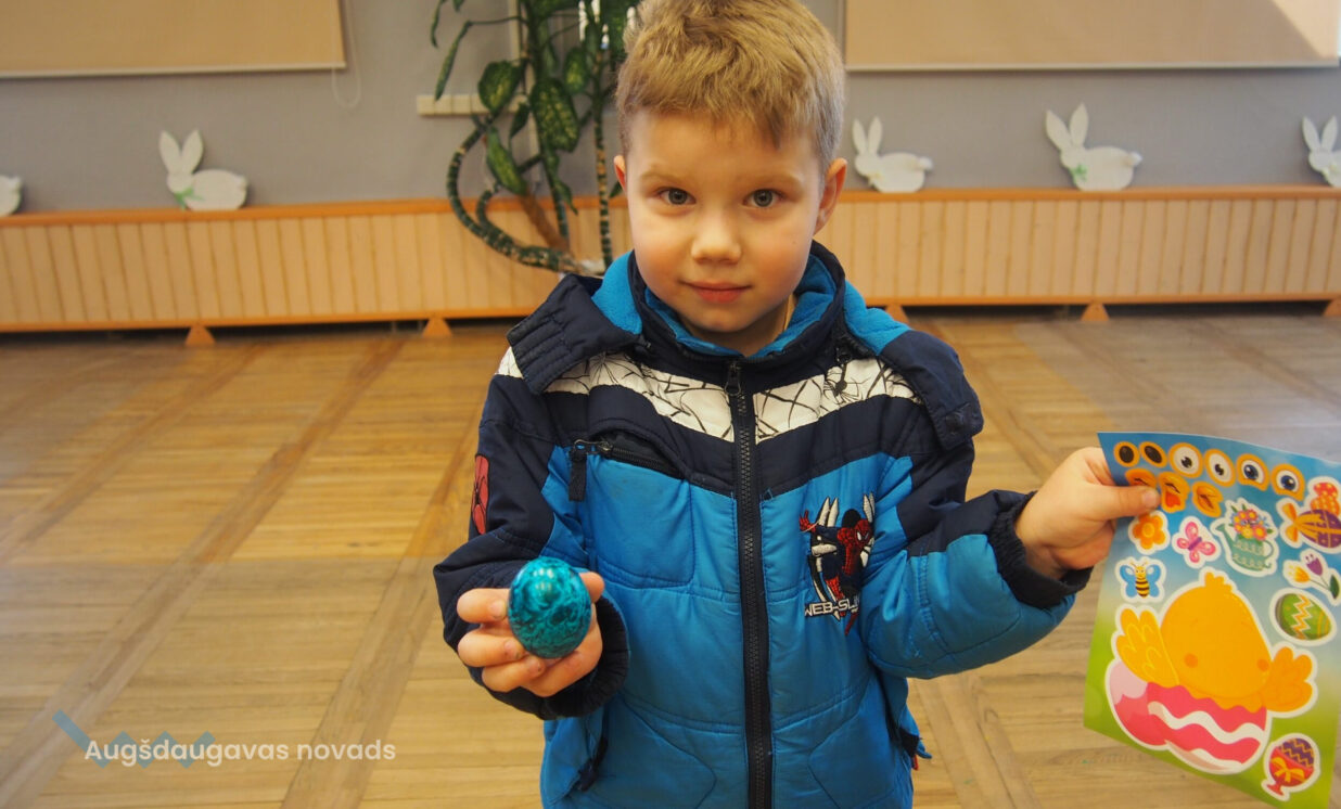 Bērni un pieaugušie aktīvi piedalījās krāsaino olu konkursā, minējas mīklas, izpildīja uzdevumus, pārbaudot savu atmiņu, veiklību un zināšanas. Visjautrākā bija olu ripināšana. Pasākumā darbojās radošā darbnīca, ka arī bija iespēja iepazīties ar dzīvajiem svētku simboliem – trušiem un cāļiem, apskatīt Jeļenas Sterlānes fotoizstādi.