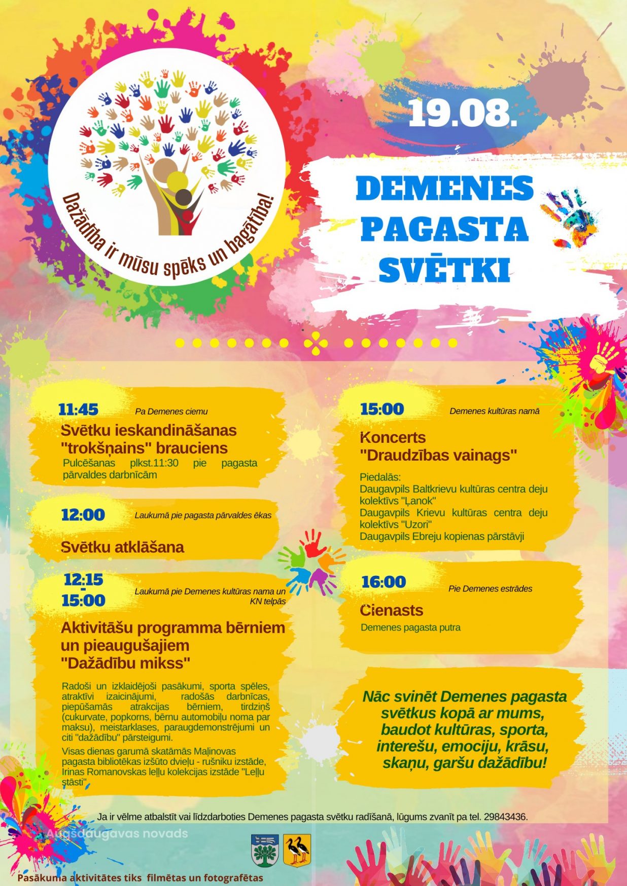 19.augustā aicinām visus uz Demenes pagasta svētkiem “Dažādība ir mūsu spēks un bagātība!”