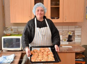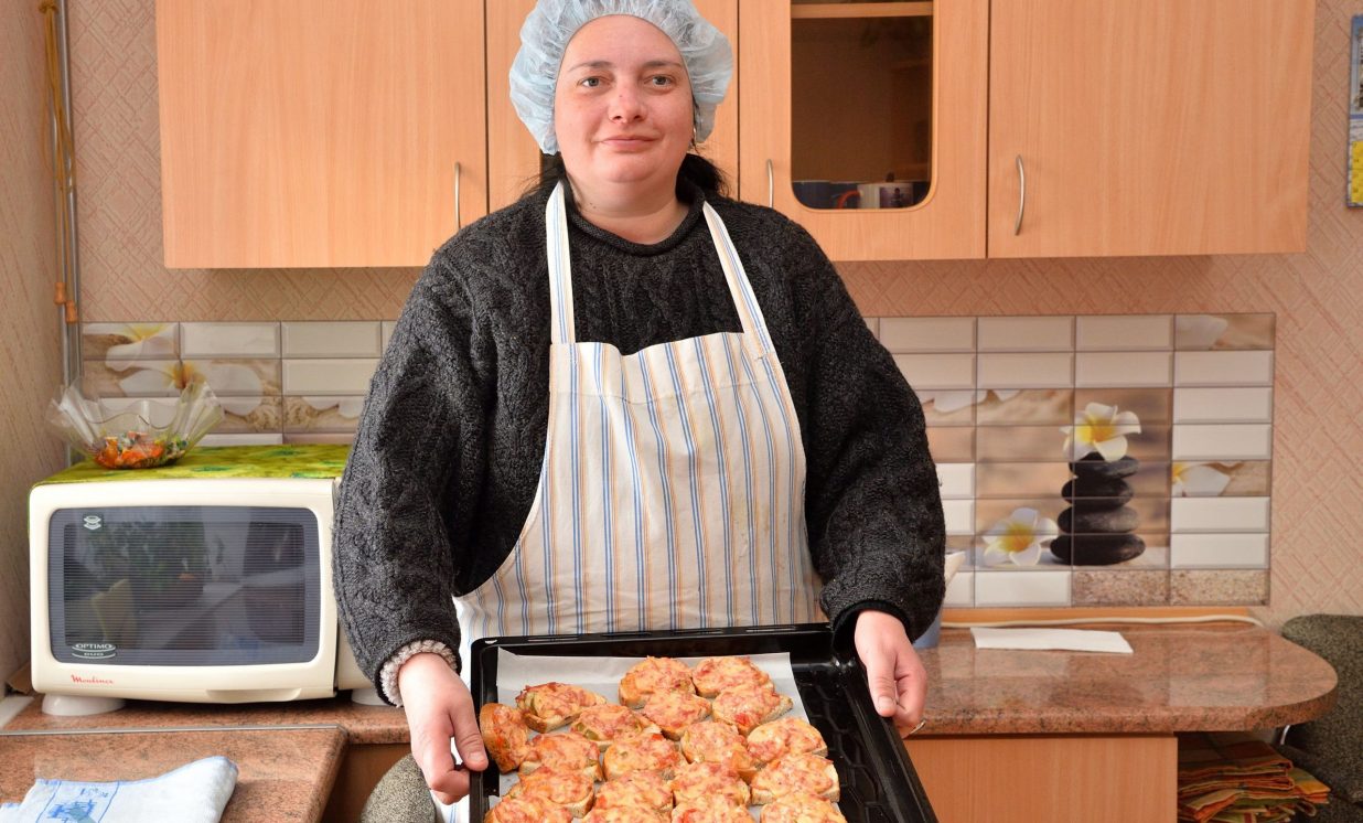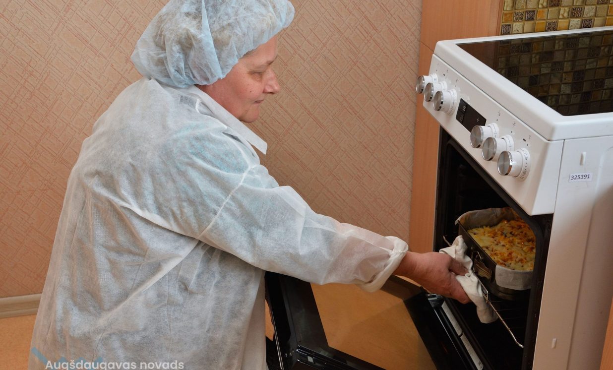 Kamēr Svetlana ierāda Arnoldam, kā pareizi piegriezt un sašūt spilvenu, tikmēr sociāla rehabilitētāja Terēzija Aleksejeva saimnieko pa virtuvi, gatavojot visiem pusdienas un iesaistot šajā procesā Jūliju. Šajā dienā top gards dārzeņu un gaļas cepumus, kā arī karstmaizes. Terēzija atzīst, ka saskaņā ar deinstitucionalizācijas projektu centra klientiem ir jāmācās dzīvot patstāvīgi, tostarp gatavot sev pašiem maltīti. Virtuvē viņi mācās sagatavot visus produktus ēdiena pagatavošanai – mizo kartupeļus, ķidā zivis, maļ gaļu. Terēzija savukārt ierāda, kā pareizi ēdienu pagatavot, lai tas būtu gards un sātīgs. Finansējumu produktu iegādei šīm nodarbībām nodrošina pašvaldība, centra darbinieki māca saviem klientiem pašiem veikalā nopirkt nepieciešamo, daudzus dārzeņus gādā no saviem piemājas dārziņiem.