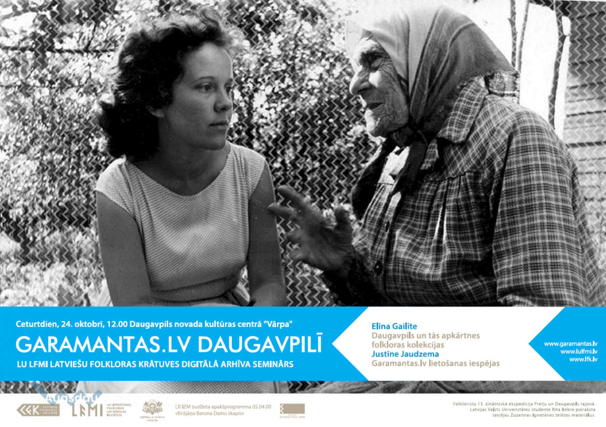 24. oktobrī no plkst. 12.00 - 14.00 Daugavpils novada kultūras centrā ”Vārpa”, Dobeles ielā 30, Daugavpilī, notiks Latviešu folkloras krātuves (LFK) digitālā arhīva www.garamantas.lv izbraukuma seminārs. Tajā dalībnieki tiks iepazīstināt ar folkloras materiāliem, kas savākti Daugavpils novadā un apkārtnē, par LFK glabātajiem nošu un horeogrāfiskajiem materiāliem, būs ieskats skaņu ierakstu un fotogrāfiju krājumos, kā arī tiks parādīts, kā prasmīgi izmantot www.garamantas.lv.
