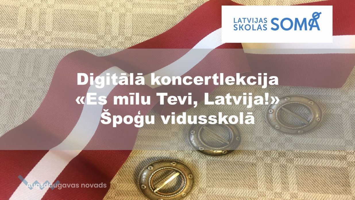 Špoģu vidusskolas skolēniem programmas "Latvijas skolas soma" ietvaros bija iespēja baudīt SIA "Framest Music" digitālo koncertlekciju "Es mīlu Tevi, Latvija!". Koncertlekcija sniedza izglītojošu informāciju par mantojumu estrādes mūzikā un citām kultūras vērtībām Latvijā. Skanēja Latvijā populāras un nozīmīgas dziesmas un Raimonda Paula, Imanta Kalniņa, Renāra Kaupera, Marata Ogļezņeva un Ulda Marhilēviča radītā mūzika. Koncertlekcija veidota kā dziesmu spēle, kuras laikā skolēni uzzināja jaunas lietas par kultūras mantojumu, iepazina folkloras mantojumu, noskaidroja, kā latvieši svin svētkus dažādos novados, izskaidroja ticējumus, no jauna atklāja lietas, ar kurām mūsu Latvijā visi varam lepoties. Varēja vēlreiz pārliecināties, cik katrs novads ir skaists un neatkārtojams. Īpašu interesi raisīja interaktīvā viktorīna, kurā varēja pārliecināties gan par iepriekšapgūtajām zināšanām literatūrā, vizuālajā mākslā, mūzikā, dabaszinībās, ģeogrāfijā, kā arī pārbaudīt, cik uzmanīgi esi ieklausījies dziedātāja stāstā.