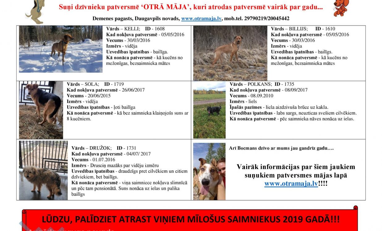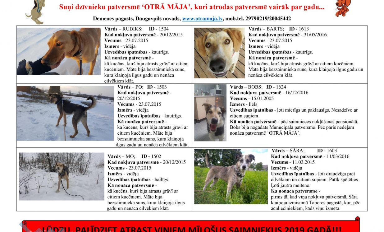 Dzīvnieku patversmē “OTRĀ MĀJA” ir 12 suņuki, kuri gaida brīnumus Jaunajā 2019 gadā! Šie suņi dzīvo patversmē vairāk par gadu, daži vairāk par 3 gadiem.