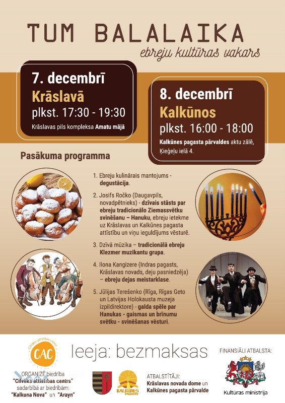8. decembrī no plkst. 16.00 līdz 18.00 Kalkūnes pagasta pārvaldes aktu zālē notiks ebreju kultūras vakars "Tum balalaika".