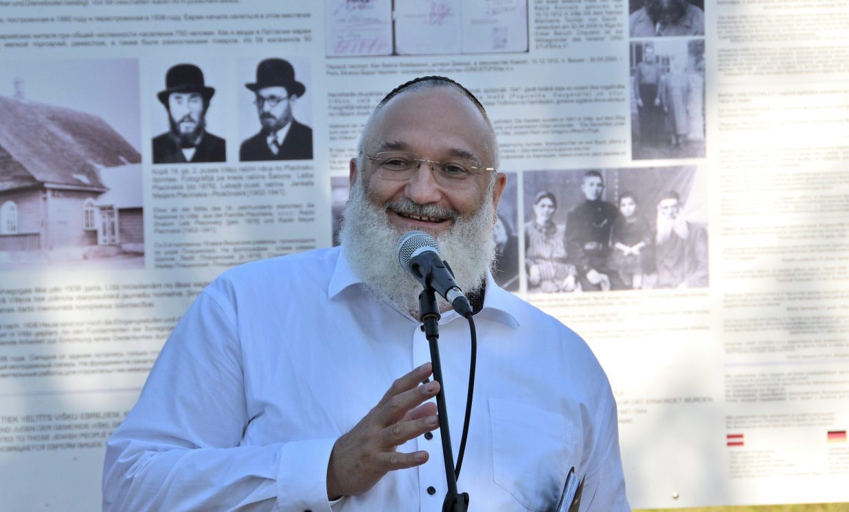 “Man ir gods kārtējo reizi sveikt jūs pie bijušās sinagogas piemiņas vietas. Šis gads ir īpašs ar to, ka mēs svinam piecus gadus, kopš sadarbības sākuma ar biedrību ”Drei Stuffen” (“Trīs pakāpieni”). Īpaši pateicos Baruham Čauskinam – viņs ir izdarījis ļoti daudz Višķu labā,” teic Višķu pagasta pārvaldes vadītājs Jānis Proms, piebilstot, ka šis darbs nav gluži taustāms vai redzams, bet tas ir darbs vēstures lappuses iepazīšanai, kura tika izsvītrota no pagasta vēstures. Nākotnē uz bijušās sinagogas pamatiem viņš ļoti cer izveidot piemiņas memoriālu – satikšanās vietu, kur varētu iepazīties ar Višķu un Latgales ebreju vēsturi.