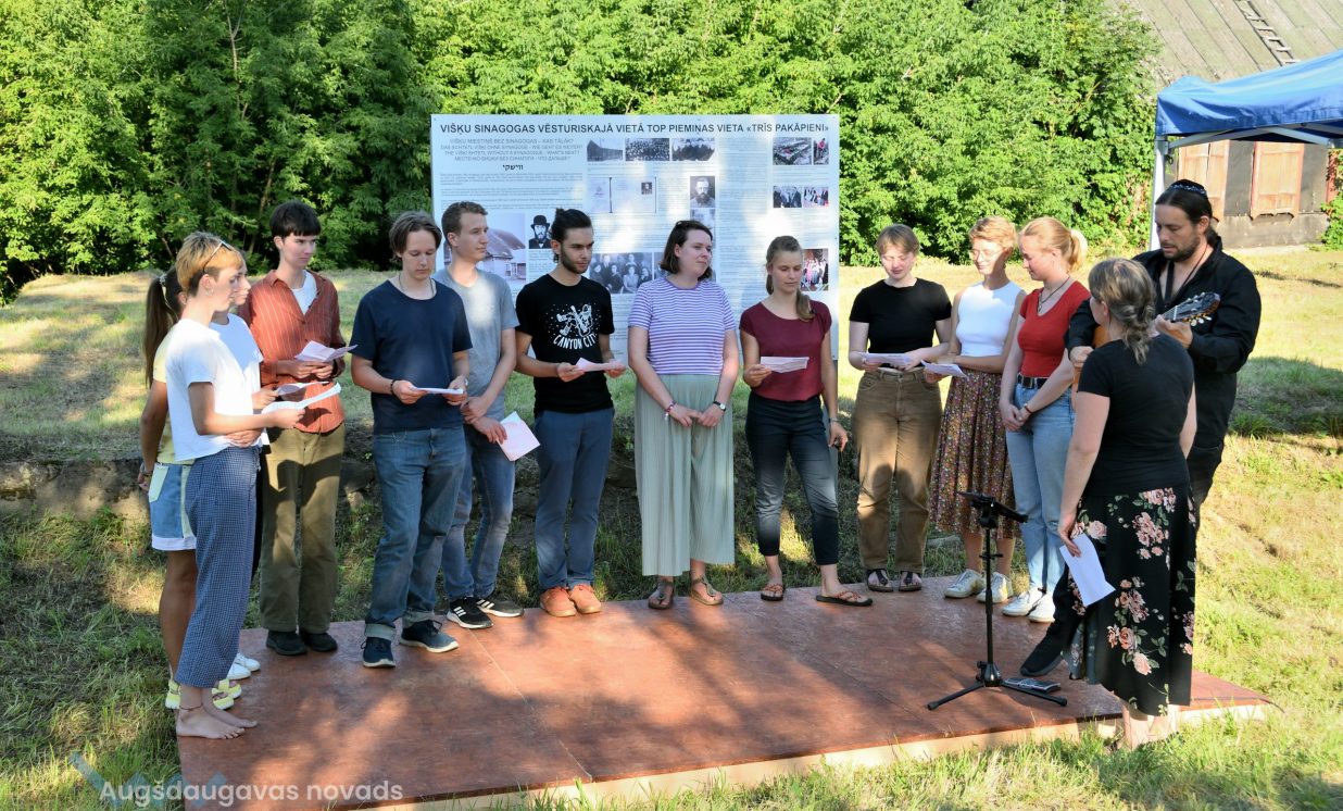 Augšdaugavas novada pašvaldības vārdā Kultūras pārvaldes vadītāja Ināra Mukāne izteica pateicību Vācijas pusei un biedrībai “Drei Stuffen” par ebreju kultūras pagājušā gadsimta 40. gadu smagās vēstures saglabāšanu. Tieši biedrība “Trīs pakāpieni” organizēja jauniešu arheoloģiskās izpētes nometni Višķos, kurā profesionālā Latvijas arheologa vadībā sinagogas vēsturiskajā vietā tiks veikti jauni atklājumi. “Domāju, ka sadarbojoties visiem kopā, biedrībām un pašvaldībām, kā arī labas gribas cilvēkiem, var paveikt daudz laba,” uzrunājot klātesošos, pauda I. Mukāne.