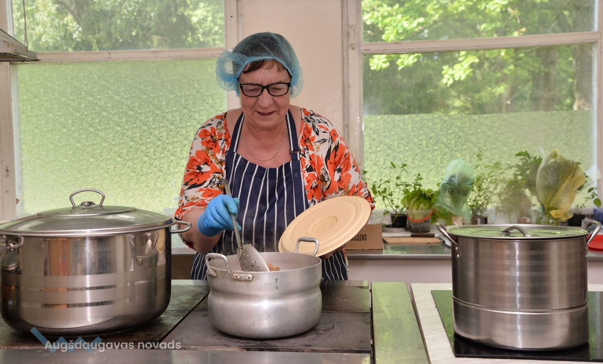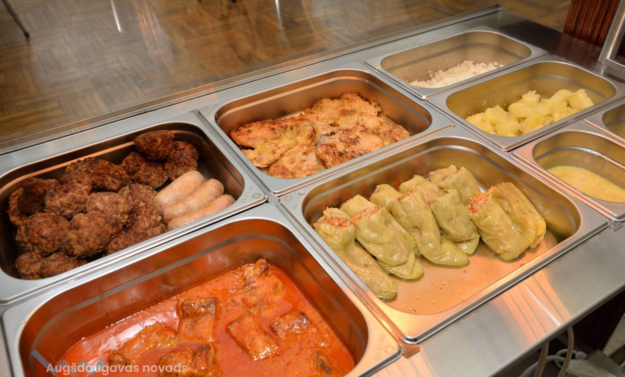 Ēdnīcā katru dienu ir cita ēdienkarte, kas tiek plānota jau nedēļu uz priekšu. “Nonācām pie secinājuma, ka auzu pārslu putra negaršo, reizi nedēļā dodam pelmeņus, tie ukraiņiem garšo. Šad tad mēs viņus palutinām, uzcepam kartupeļu pankūkas ar krējumu. Viņiem ļoti garšo mazsālīta siļķe ar vārītiem kartupeļiem un biezpienu - īsts latvieša ēdiens. No rītiem arī bulciņas un kafija, bērniem garšo pārslas ar pienu,” pieredzē dalās Inese.