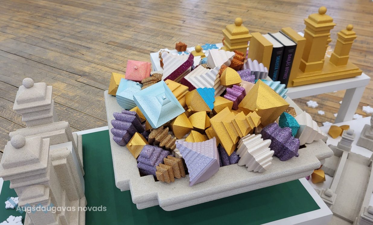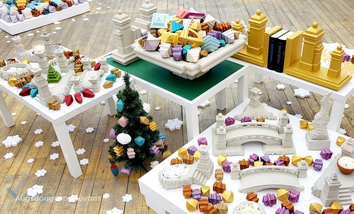 Spēlējoties ar formām, krāsām, tekstūru un izmēriem, autors ir radījis daudzveidīgus oriģinālus rotājumus un dekorus, kas palīdz radīt svētku un brīnuma noskaņu mājās.