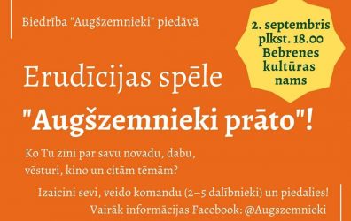 2. septembrī Bebrene jau otrās Augšzemes erudīcijas spēle, ko piedāvā biedrība Augšzemnieki. Laipni aicināti gan novadnieki, gan viesi!