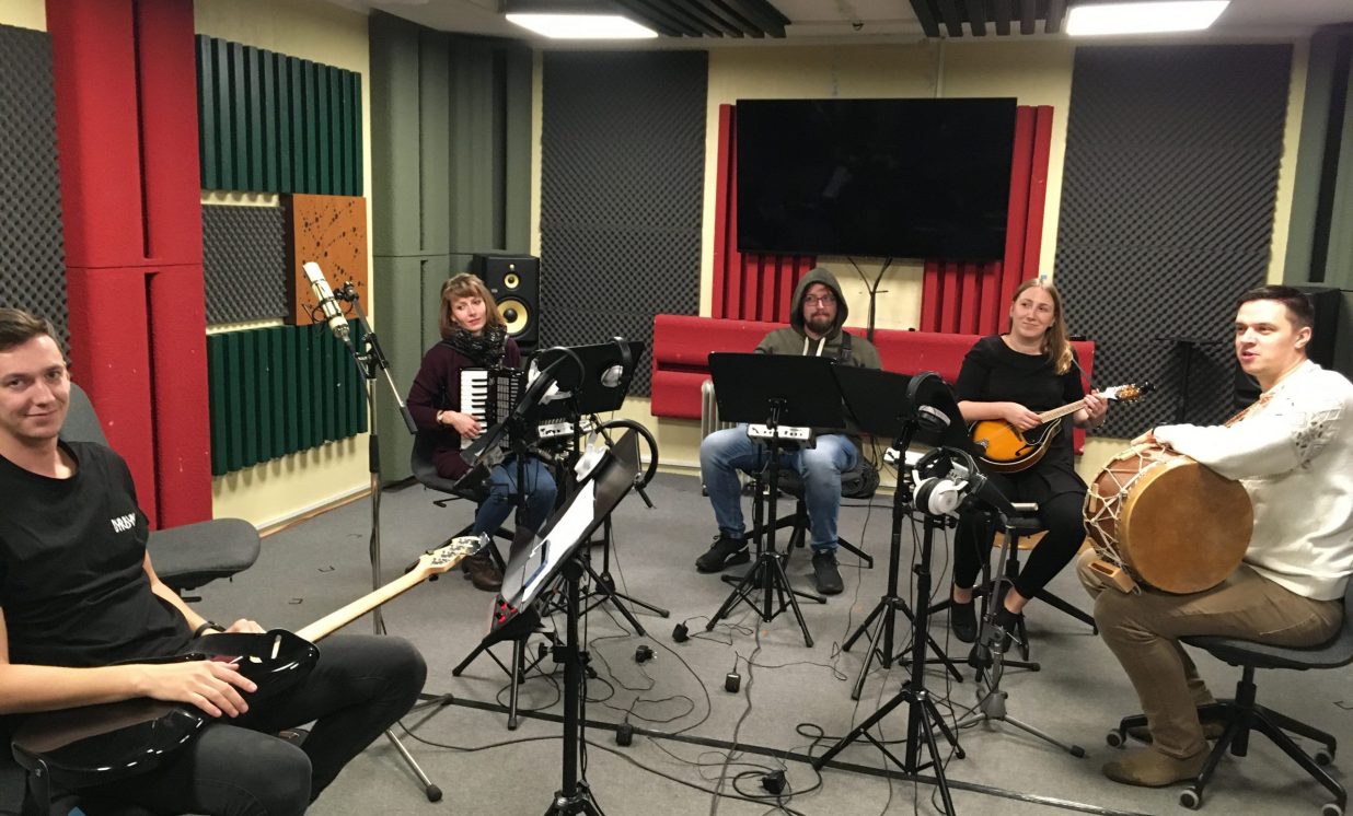 Folkloras kopa “Dyrbyni” ieraksta dziesmas studijā