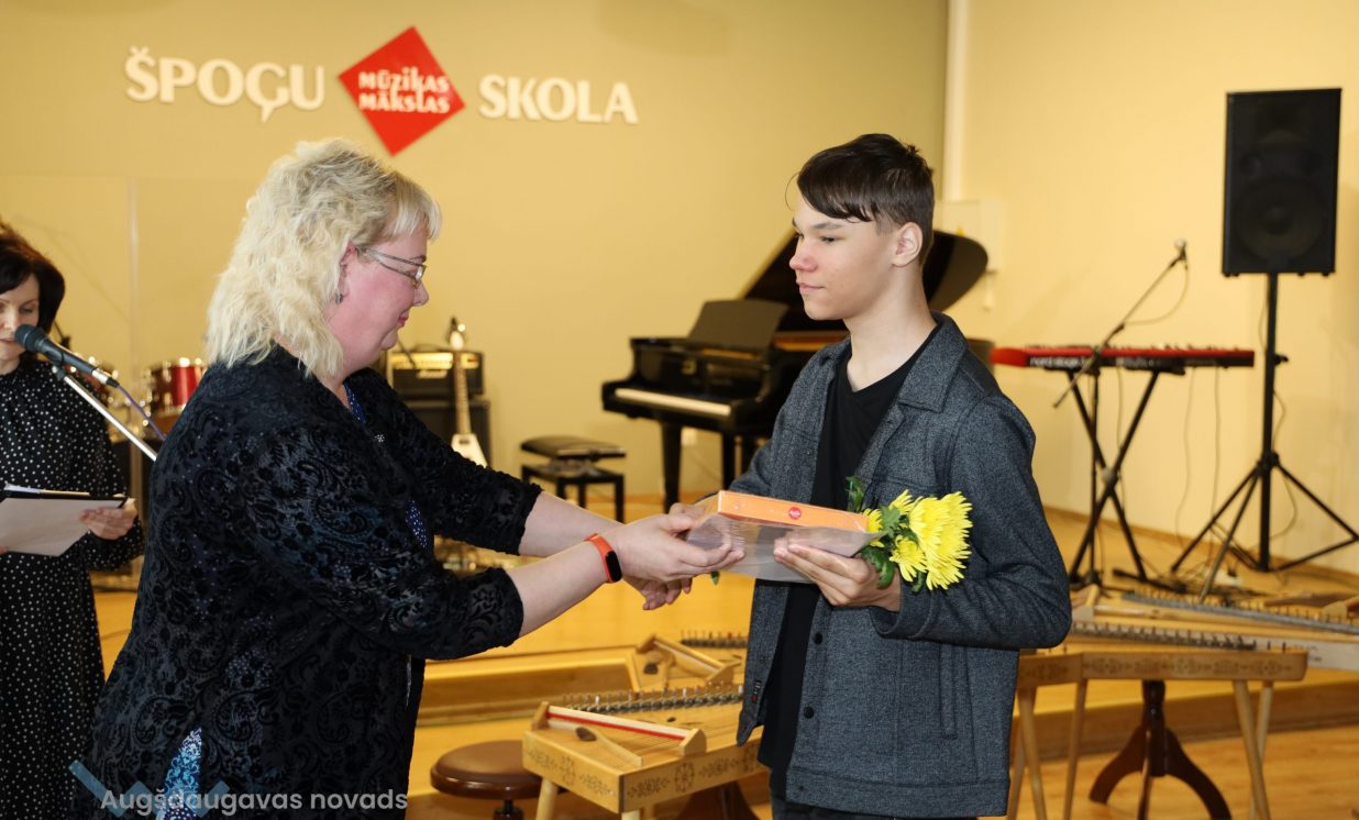Atskatoties uz paveikto mācību gada laikā, tika pieminēti un apbalvoti audzēkņi, jaunie mūziķi un mākslinieki, kuriem šis mācību gads izrādījies īpaši veiksmīgs: ar Pateicības rakstiem par labām un teicamām sekmēm un Atzinības rakstiem par skolas vārda popularizēšanu piedaloties dažāda mēroga konkursos un festivālos.