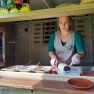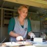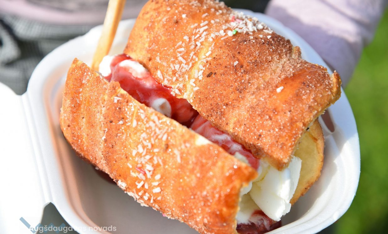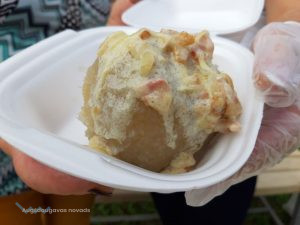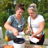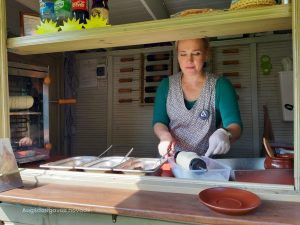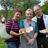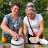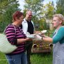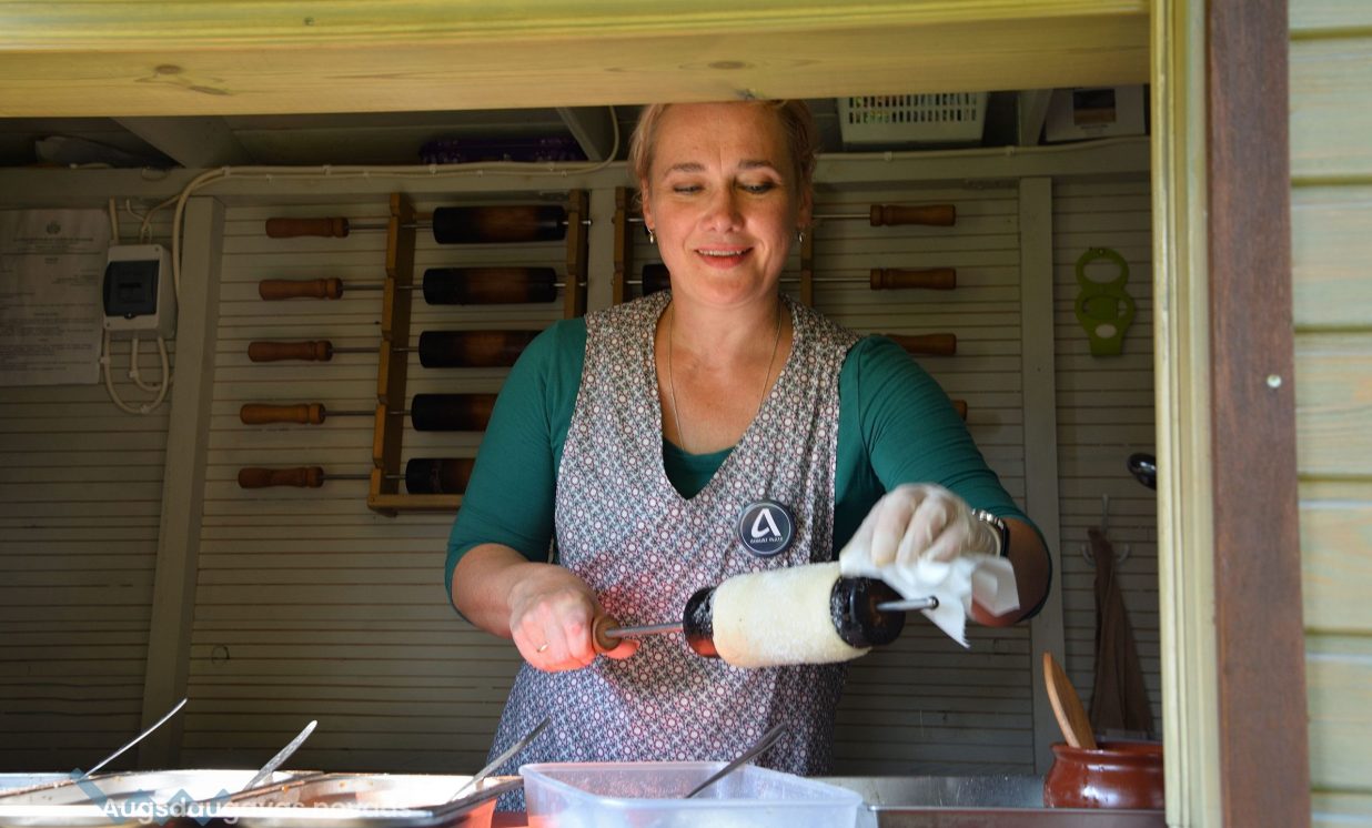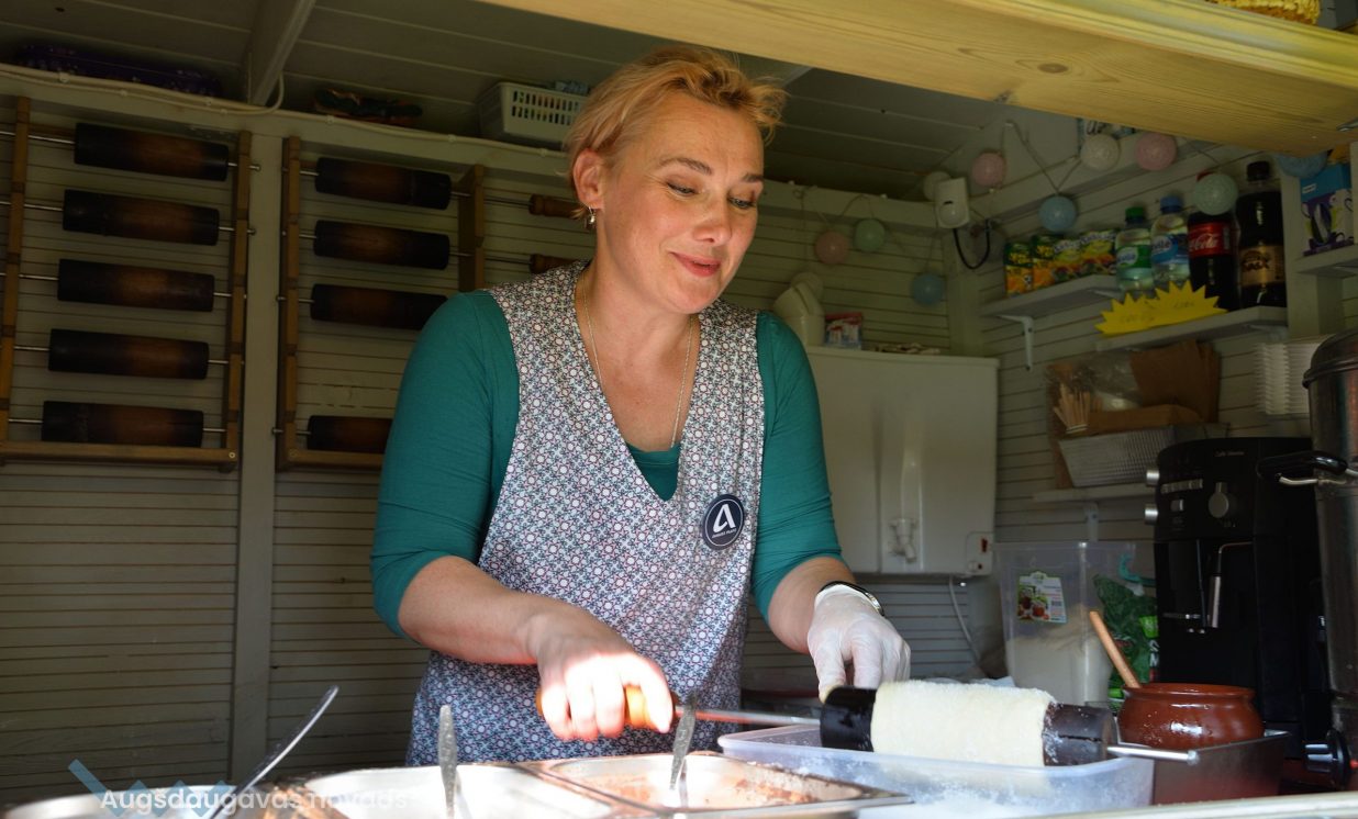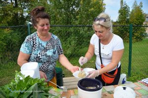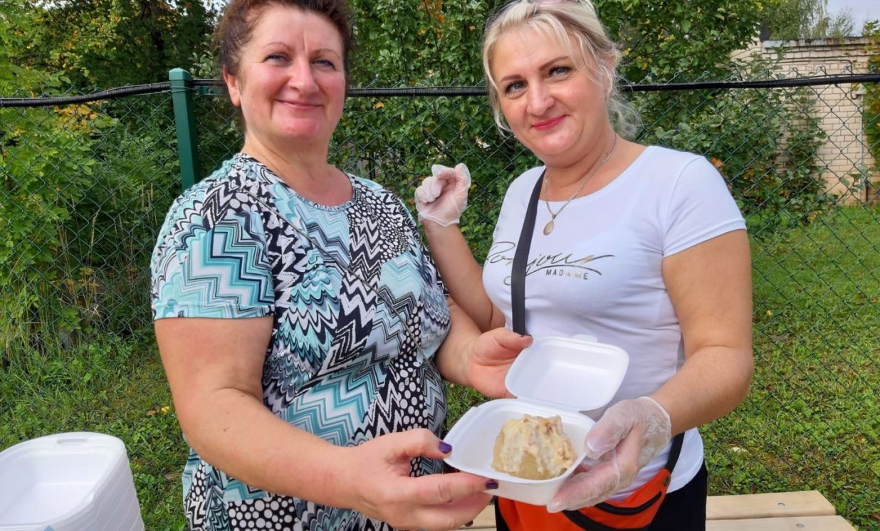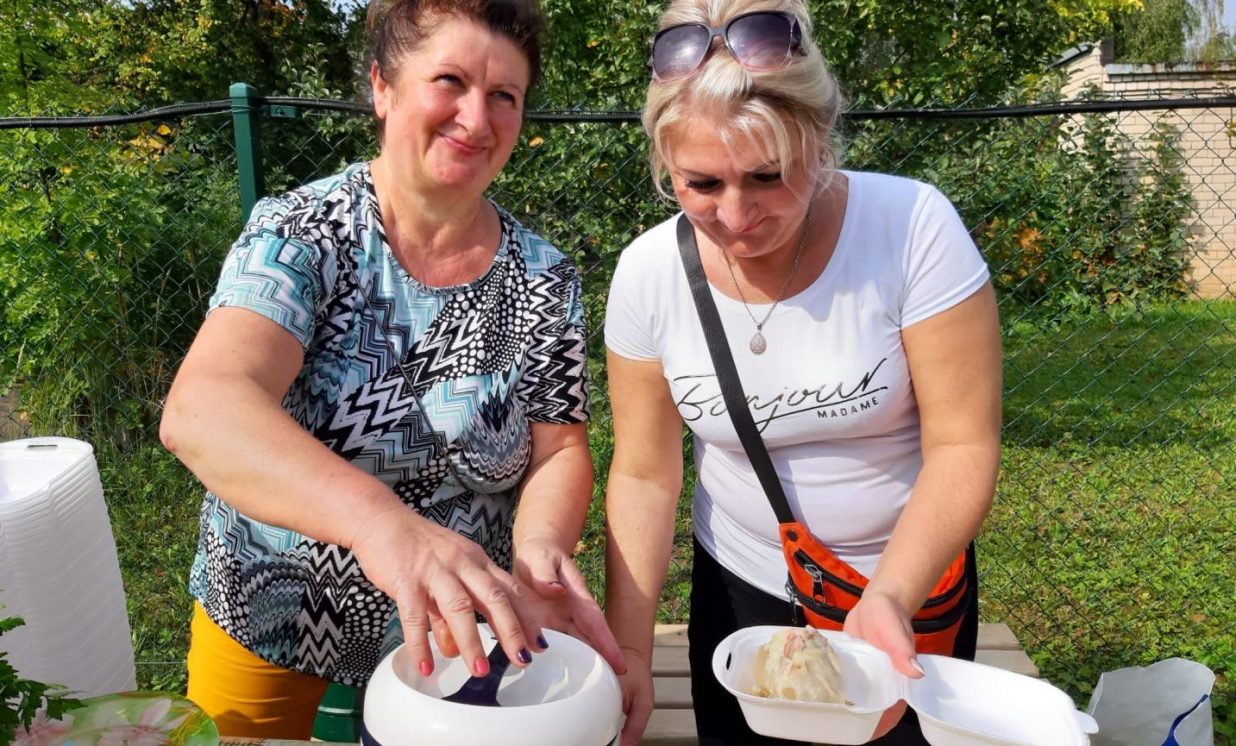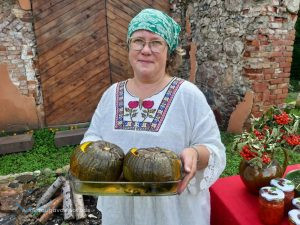 11. septembrī atpūtas vietā AugustplatzKalkūnos jau otru reizi notika īsta balle gardēžiem. Pasākuma “Mājas kafejnīcu dienas” apmeklētāji tika laipni aicināti nobaudīt dažādus vietējos labumus, ko gatavo visīstākie kulinārā mantojuma tradīciju nesēji – vietējie iedzīvotāji. Galdā tika celti mājas ēdienu, gatavoti pēc sen pārbaudītām tradicionālām latviešu, latgaliešu, lietuviešu, krievu un pat turku receptēm. Šoreiz pasākumā piedalījās arī vietējie amatu meistari, kas izgatavo dažādas praktiskas un skaistas lietas. Viesus priecēja arī vēsturisko deju kolektīvs no Tabores. Šoreiz pasākums bija veltīts medību tēmai, jo 19.gs beigās Kalkūnu muižas īpašnieks Augusts fon Etingens bija baltvācietis, kam visvairāk dzīvē patika medīt savos plašajos medību laukos kopā ar Otto fon Bismarku. Pēc medībām draugi pavadīja laiku pie smalki uzklāta galda, vērojot galma dejas. Galdā tika celta saimnieces Jolantas Bāras gatavotā stirnas gaļas zupa ar kirbju bekona mēnestiņu Etingēna gaumē, ķirbju podiņi ar meža sēnēm, rupjmaizes kārtojums un zāļu tēja, kā arī dažādi konservējumi ziemai un pat sīpolu zapte. Saimniece Svetlana Smirnova gatavoja savu tradicionālo našķi – skursteņkukūkas, ko varēja nobaudīt ar plūmju ievārījumu un saldējumu. Kalkūniete Marija Kuhanoviča bija sarūpējusi gardus cepelīnus. Šī ēdiena recepti viņa aizguvusi no savas māmuļas, kas bija lietuviete. Marijas mājās cepelīni tiek gatavoti ļoti bieži īstā lauku krāsnī. Lai arī cepelīnu gatavošanas process ir visai laikietilpīgs, saimniecei tas sagādājot īstu baudu. Svētkiem viņa bija sagatavojusi 40 cepelīnus, ko pasniedza ar gardu gaļas un sīpolu mērci. Viņai talkā nāca Aļona Kovaļkova. Vineta Era ar savu vīru – turku Aitaku (Aytac) uz ugunskura vārīja kazas gaļas un sīpolu zupu turku gaumē, gatavoja turku pankūkas, ķirbju saldumus un picu “pide”. Šoreiz apmeklētāji varēja iegādāties arī vietējo amatnieču darinājumus. Jeļena Gridasova piedāvāja dažādus praktiskus tamborējumus – somas, kosmētikas maciņus, lādītes un traukus dažādu mantu glabāšanai. Ar rokdarbiem aizrāvies arī viņas dēls Vladimirs, kurš veido dažādas pītas figūriņas. Rokdarbniece Jeļena Poltarjonoka darina dažādus praktiskus sīkumus no koka, ko pati arī apglezno, -- atslēgu piekariņus, magnētiņus, olu turētājus un rotaļlietas. Amatniece atzīst, ka iedvesmu smeļas no saviem bērniem un viņu mīļākajiem animācijas filmu varoņiem. Goda vietā šoreiz bija arī sīpoli, kas ir neatņemama visu ēdienu sastāvdaļa. Pasākumā neiztika bez stāstiem par ēdienu vēsturi un sīpoliem. Jolanta Bāra zina stāstīt pat īpašo pasaku par Kalkūnu sīpoliem. “Reiz senos laikos kāds nabaga vīrs no Baltkāju kalna apkārtnes brauca uz Daugavpils tirgu pārdot vezumu lielu un gardu sīpolu, kādus mācēja izaudzēt tikai viņa sieva. Visu vasaru saime bija stādījusi, laistījusi un ravējusi, un tagad Daugavpils traktieros esot daudz ciemiņu, kam galdā jāceļ gardi sīpolu klopši, pīrāgi un zupas – sīpoliem laba cena un to daudz vajagot. Rītausmas vēsumā vecā un lēnīgā ķēvīte vēl tīri mundri klidzināja cauri Kalkūnu ciemam, un vīrs domāja jaukas domas par to, ka nopelnīs labu naudiņu, nopirks lietas saimniecībai – kādas naglas un ķieģeļus, ķipjus un spaiņus, gardumus bērniem, ko skaistu sievai, un vēl, vēl…vecākā meita jālaiž skolās un jāpērk kāds vēršādas gabals apaviem, vajag sāls maišeli speķa sālīšanai, un varbūt paliks kāds grasis kortelītim uz apkūlībām. Te piepeši straujajā ceļa līkumā uz kalna, kur joprojām stāv Kalkūnes muižas pils, no pils vārtiem uz ceļa izbrāzās četrjūga kariete. Muižas kunga viesi devās mājup uz Rīgu, un trakulīgie zirgi, muižas lepnajā stallī labi pabaroti un nostāvējušies, nebija vairs viegli valdāmi. Zemnieka ķēvīte no pārsteiguma paklupa, rati uz kalna sagriezās un apgāzās. Visa sīpolu krava pašķīda un aizripoja no kalna lejā, kurš ieripoja zem žoga pagalmā, kurš tīrumā, kurš pie mājas pakša. Kalkūnu ciema saimnieces, priecīgas par negaidīto veiksmi, veikli salasīja slavenos, gardos sīpolus un noslēpa sēklai – ciema auglīgajā, mālainajā zemē labi padevās dārzeņi, bet pavisam labu sīpolu gan te vēl nebija bijis. Zemnieks apsēdās ceļa malā un sāka raudāt – kā lai tagad atgriežas mājā, pavisam tukšām rokām? Bet kalkūnieši, kā ieraduši dzīvot draudzīgi, drīz vien sāka nākt ar savām veltēm, un sanesa vīram pilnu vezumu Kalkūnos taisītu labumu – ķieģeļus, naglas, traukus, sāli, ādas gabalu, gardumiem kaltētus ābolus un bumbierus, krāsainus lakatiņus un zeķes, un par spirta brūzī taisītu kortelīti arī neaizmirsa. Brauca vīrs mājup priecīgs, bet Kalkūnos joprojām audzē un ēd sīpolus, paaudzēs glabājot receptes. Tā runā, ka franču sīpolu zupu un sīpolu marmelādi te iemācījušies gatavot kopš laikiem, kad te stāvējis franču karaspēks, bet vācu sīpolkūka, poļu sīpolu pīrāgi, lietuviešu cepelīni ar sīpolu mērci un daudzi citi sīpolu ēdieni ir tradicionāli daudzajām tautībām, kas izsenis kopā draudzīgi dzīvo Kalkūnos. Un, ja kāds ciemiņš kalkūniešiem dikti iepatīkas, tad tāds var cerēt saņemt dāvanā ģimenes sīpolu sēklai no vietējām saimniecēm. Teksts, foto: Inese Minova