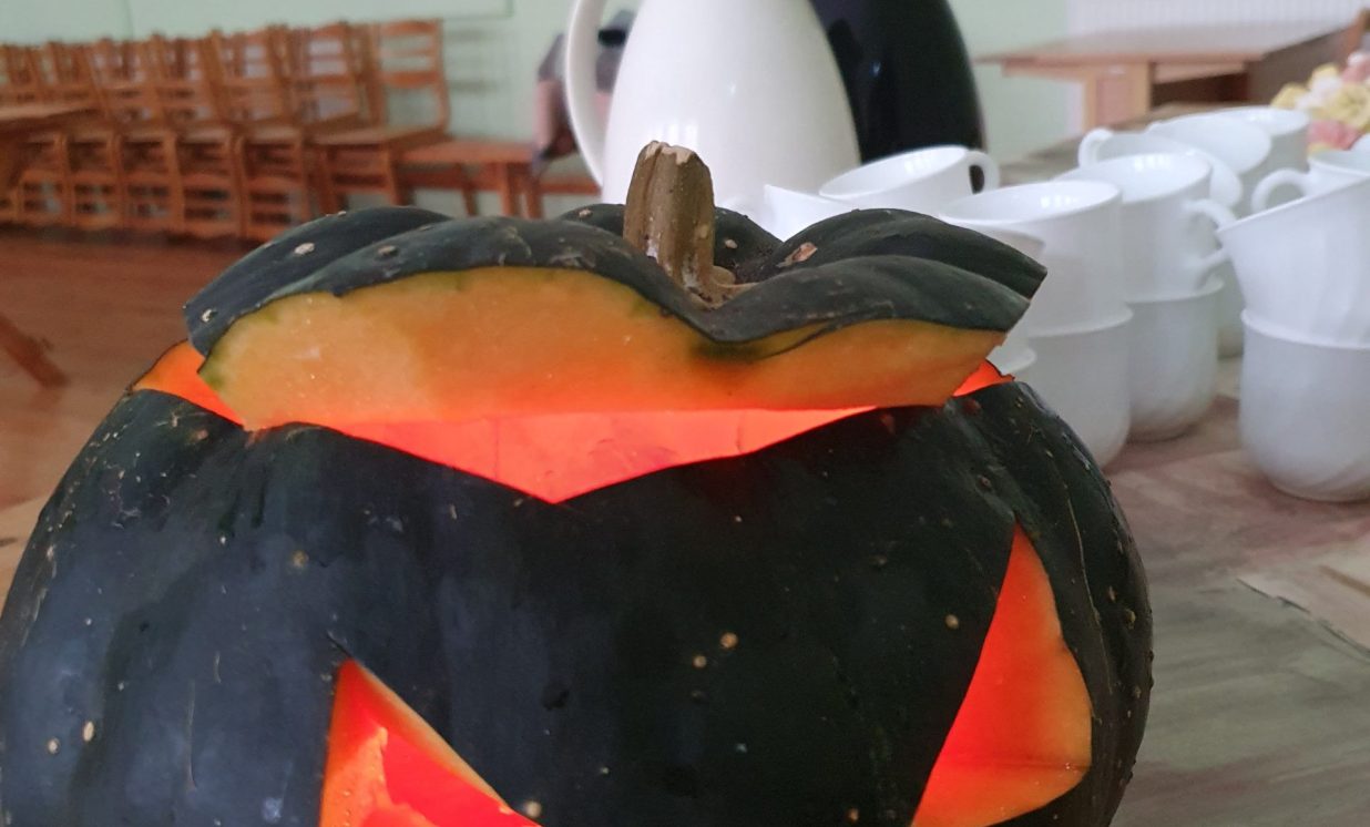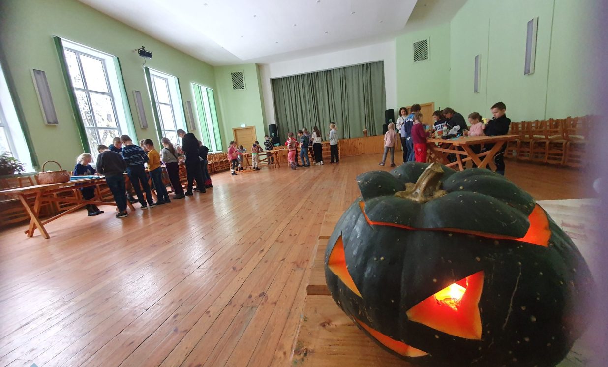 Mistiska atmosfēra valdīja Medumu Tautas namā 26. oktobrī - noslēpumaina mūzika, izgaismotais ķirbis un “šausmīgi" mīļi dekori.