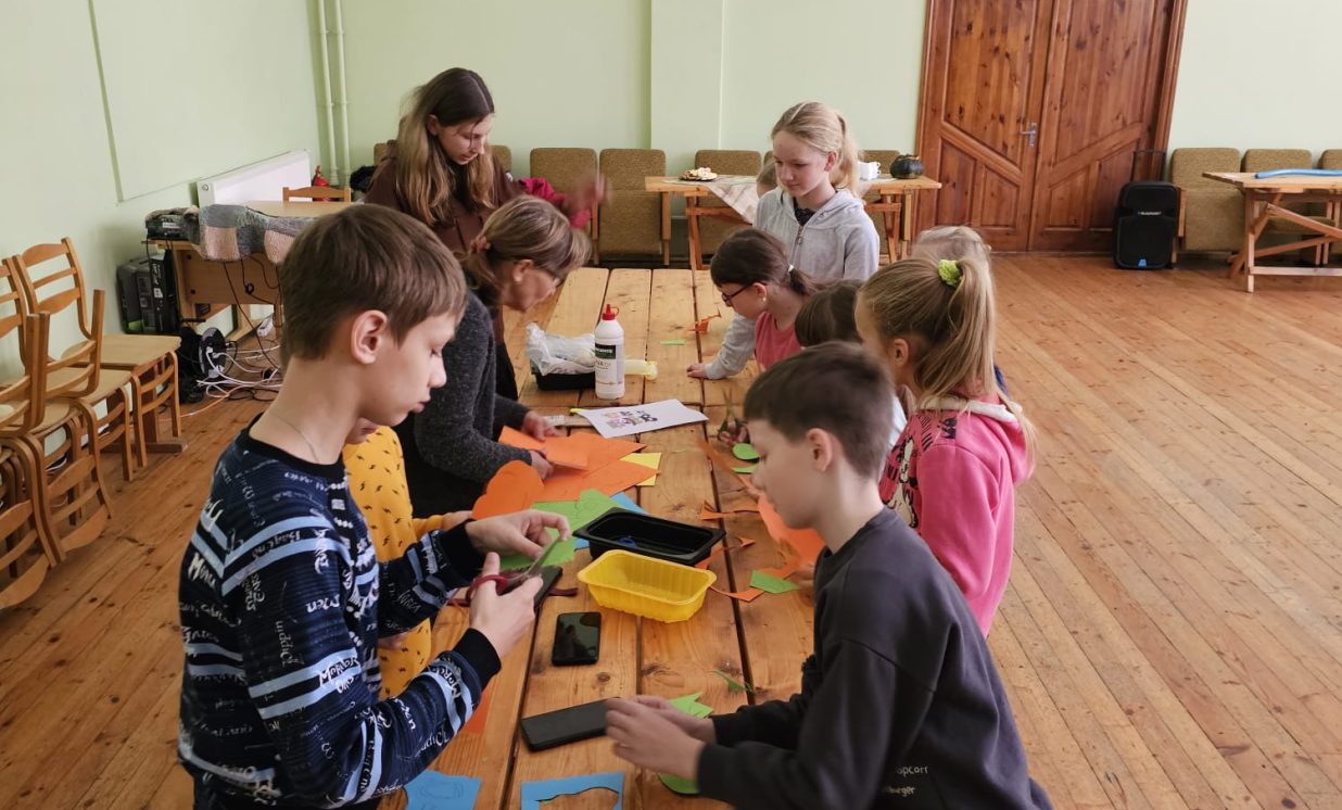 Ciemos ieradās kupls skaits bērnu no Daugavpils pilsētas Bērnu un jauniešu centra “Jaunība” (pulciņi “Tehniskā modelēšana” un “Veidošana”), lai padalītos ar savu pieredzi un iemācītos kaut ko jaunu. Arī vietējo bērnu atnāca daudz. Visi bērni tika sadalīti trīs grupās, kas draudzīgi komunicēja savās komandās. Medumu Tautas nama pārstāvji un BJC “Jaunība” skolotājas Anfisa Labute un Marina Bojarova piedāvāja bērniem dažādus dekorus no parastiem materiāliem. Radošajā darbnīcā katrs izgatavoja sev gan sikspārņus, gan ķirbjus, gan svētku maskas. Pēc darba visi atpūtas pie tējas galda ar cepumiem. Pasākums beidzās ar spēlēm un nopelnītajiem saldumiem.
