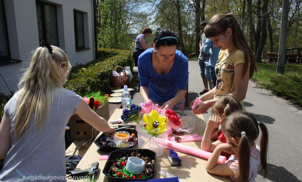 Ikvienam pasākuma dalībniekam bija iespēja pagatavot apsveikumu māmiņām kopā ar floristi Jeļenu Nežberti, mieloties ar turpat uz vietas pagatavotiem žagariņiem, kurus vārīja Regīna Tenisa un Ināra Keviša, priecāties bērnu atrakcijā un iegūt balvu, uzrāpjoties umurkumurā.