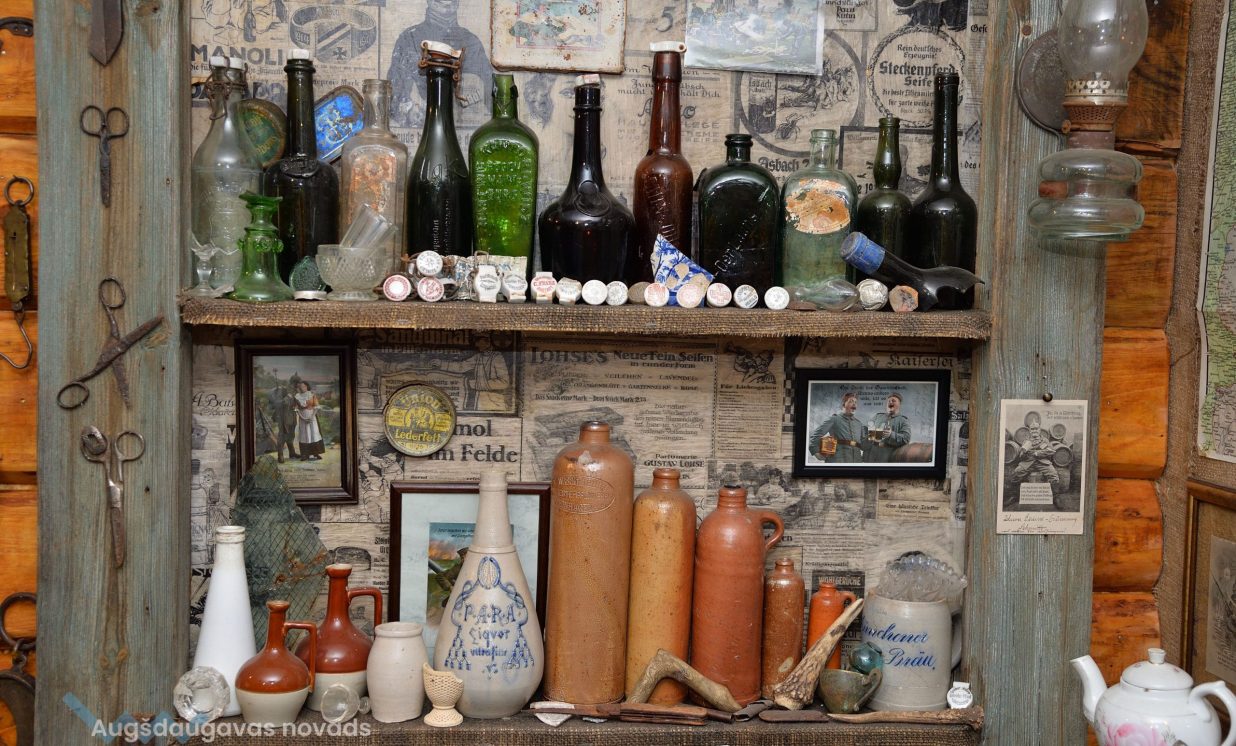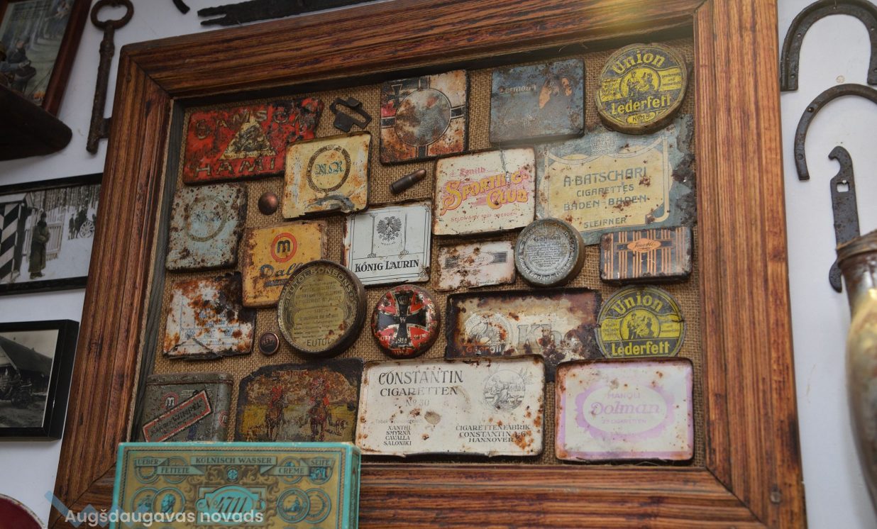 Esošā ekspozīcija nosacīti sadalīta divās daļās – vienu veido Raimonds, otru Juris. Gan vienā, gan otrā ir, ko redzēt. Eksponātus Juris nepērk un arī nepārdod. Viss ir paša un brāļa atrasts. Ekspozīcijā ir dažādi munīcijas pārpalikumi, zaldātu ikdienā lietotie priekšmeti. Juris aizrautīgi stāsta par saviem atradumiem, ar katru no tiem saistās kāds īpašs stāsts. Stikla vitrīnā redzami vairāki plēsīga putna atveidojumi metālā, tas ir Prūsijas karalistes ģerbonis, kas rotājis daudzu vācu zaldātu ķiveres. Retāki ir citu Vācijas federālo zemju, piemēram, Saksijas ģerboņi, taču Jurim izdevies atrast arī tādu. Visi eksponāti jau vairāk kā simts gadus atradušies zem sūnām vai zemes, daudzus skāris laika zobs, taču liela daļa par brīnumu labi saglabājusies, tostarp kara hospitāļa plākstera iepakojums ar visiem uzrakstiem un plāksteri. Plauktos liela stikla pudelīšu kolekcija. Daudzās kara laikā atradušies medikamenti. Juris uzgājis odekolona pudeli ar visu papīra etiķeti, uz kuras joprojām var salasīt “Kölnisch Wasser” (“Ķelnes ūdens”), tādu Vācijā ražojot līdz mūsu dienām. Greznās stikla glāzītes izrādās sinepju un džema trauciņi, ko vēlāk zaldāti izmantojuši grādīgā saliešanai.