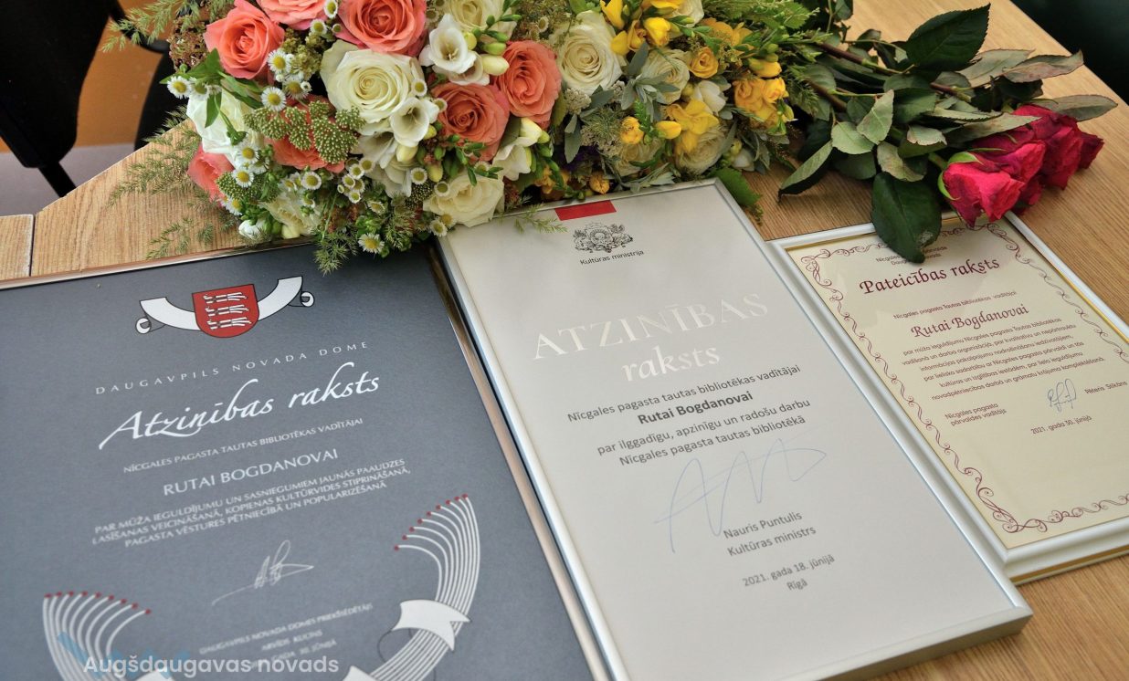 Pēdējā darba dienā teikt sirsnīgus pateicības vārdus un laba vēlējumus pie Rutas Bogdanovas ieradās Daugavpils novada Kultūras pārvaldes vadītāja Ināra Mukāne, Daugavpils novada bibliotēku metodiskā centra vadītāja Marina Baranovska un Nīcgales pagasta pārvaldes vadītājs Pēteris Stikāns, kuri pasniedza Daugavpils novada domes un Kultūras ministrijas Atzinības rakstu un Nīcgales pagasta Pateicības rakstu par mūža ieguldījum, ilggadīgu, apzinīgu un radošu darbu bibliotēkā.