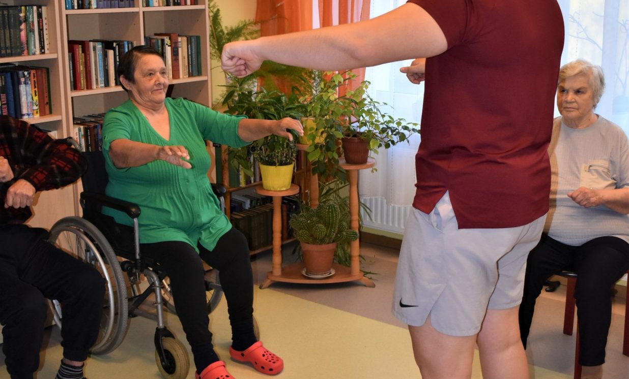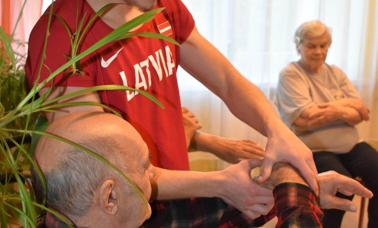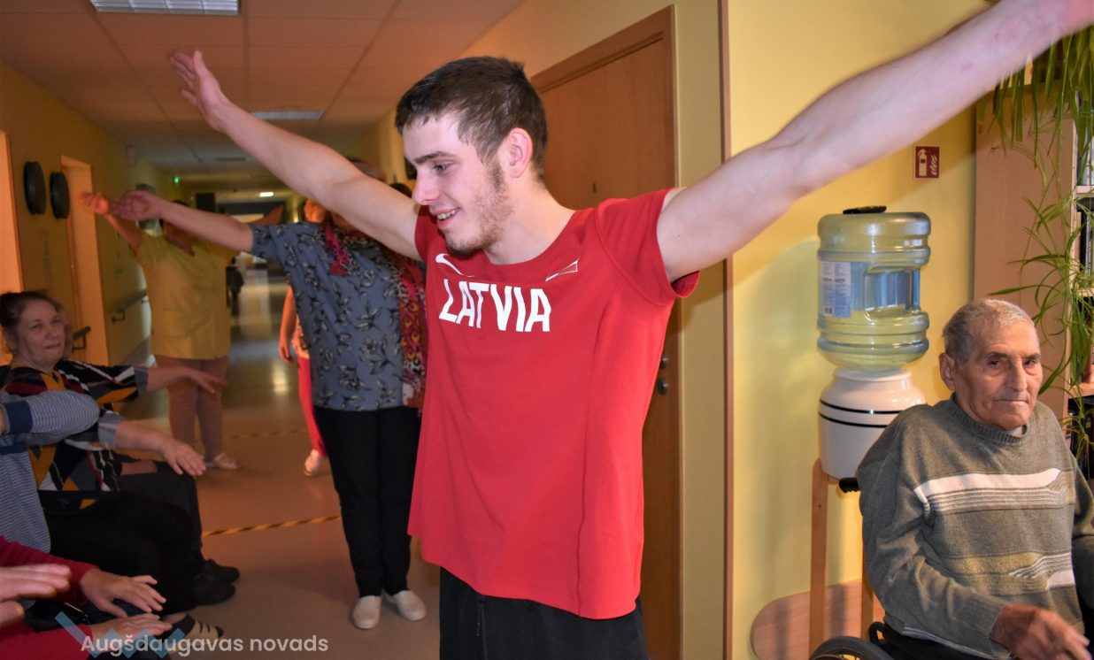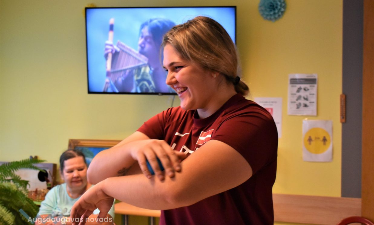 Jaunajāmācību saturā vidusskolas posmā ir ieviests jauns kurss “Projektu darbs”, kurā skolēni nostiprina un demonstrē lietpratību kompleksās situācijās, tai skaitā caurviju prasmes, kā arī zināšanas, prasmes, izpratni, ieradumus un to kombinācijas augstākajā mācību satura apguves līmenī saistībā ar vienu vai vairākiem skolēna izvēlētajiem padziļinātajiem kursiem. Skolēni darbojas pētnieciskajā, jaunrades un sabiedriskajā darbā, attīstot pašvadītas mācīšanās prasmes. Špoģu vidusskolas 12. klases skolēni, tanī skaitā Adriana ar projektu biedru un labāko draugu Denisu, izvēlējās darboties sabiedriskajā darbā, pievēršot uzmanību dažādām sabiedrības grupām. Viņi novembra garumā devās palīdzēt Višķu sociālās aprūpes centra klientiem. Tā kā abi skolēni ir sportisti, viņi izdomāja, ka varētu novadīt vingrošanas nodarbības, jo centra klienti parasti ir mazkustīgi. “Vingrojumus skatījāmies internetā. Biju jautājusi arī saviem treneriem. Visu apkopojām un izveidojām vingrojumu kompleksu, lai attīstītu visas ķermeņa daļas no galvas līdz gurniem, un locītavām. Mēs redzējām, ka viņiem tas patīk, ka viņi ir priecīgi mūs gaidīt, un, ka klienti kļūst arvien kustīgāki. Ar katru nodarbību viņi pildīja arvien vairāk uzdevumu un bija aktīvāki,” teic Adriana. Tāpat centra klientiem bija iespēja vēl aktīvāk pavadīt laiku, piedaloties dažādās spēlēs ar bumbu, kā arī tika rīkoti konkursi. Patlaban jaunieši sastāda projektu atskaites un gatavojas prezentēt to rezultātus skolā.