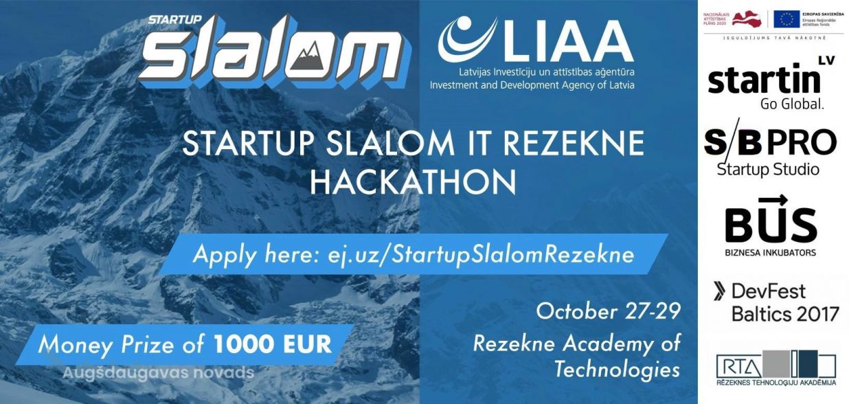 Startup Slalom ir zīmols, ko izveidoja Latvijas Startup uzņēmumu asociācija Startin.LV un 2017.gadā hakatoni tiek organizēti kopā ar Latvijas Investīciju un attīstības aģentūru (LIAA). Pasākumā Rēzeknē pievienosies arī vairāki partneri: Science and Business Professionals Latvia (S/B PRO Startup Studio) kā pasākuma līdzorganizators un moderators, LIAA Rēzeknes, Daugavpils, Jēkabpils un Madonas Biznesa inkubatori un Rēzeknes Tehnoloģiju akadēmija kā vietējie partneri, Google Developers Group Latvia, kas nodrošinās bezmaksas biļetes uz konferenci DevFest Baltics 2017 otrās vietas uzvarētājiem, savukārt galvenais atbalstītājs nodrošinās balvu EUR 1000,- pirmajai vietai!