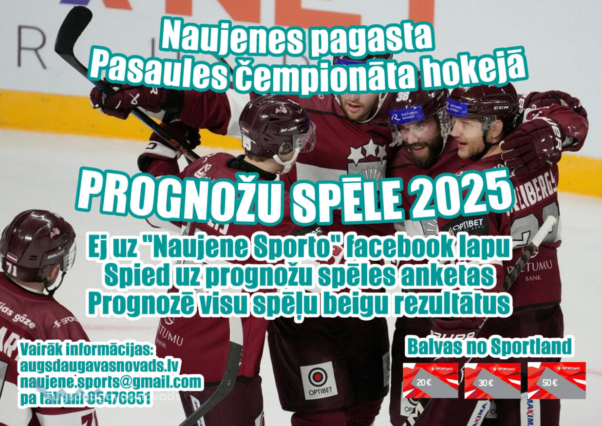 Kaut gan aiz loga vēl sniegs, bet hokeja pavasaris sāk uzņemt apgriezienus! Latvijas hokeja jau atkal dodas cīņā Pasaules hokeja čempionātā! Un dalībnieki atkal var doties cīņā pēc balvām un noskaidrot, kurš tad ir viserudītākais un veiksmīgākais hokeja fans! Aizpildi anketu līdz 9. maijam un prognozē visu 2025. gada Pasaules hokeja čempionāta spēļu rezultātus un laimē balvas no Sportland! Nolikumu lasi un anketu meklē šeit!