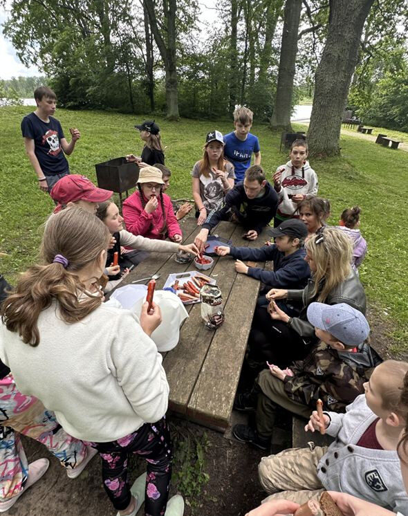 Līdzās izglītojošajām tēmām nometnes ikdienā tika iekļautas arī dažādas radošas un saliedējošas aktivitātes – origami darbnīcas, stresa bumbiņu izgatavošana, kopīgas rotaļas, spēles un pat priekšnesumu sagatavošana un prezentēšana. Viena no bērnu iemīļotākajām aktivitātēm bija pārgājiens uz Medumu ezeru, kur viņi ne tikai mācījās par drošību dabā, bet arī baudīja kustības svaigā gaisā.