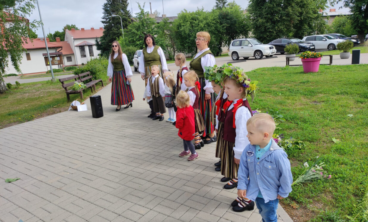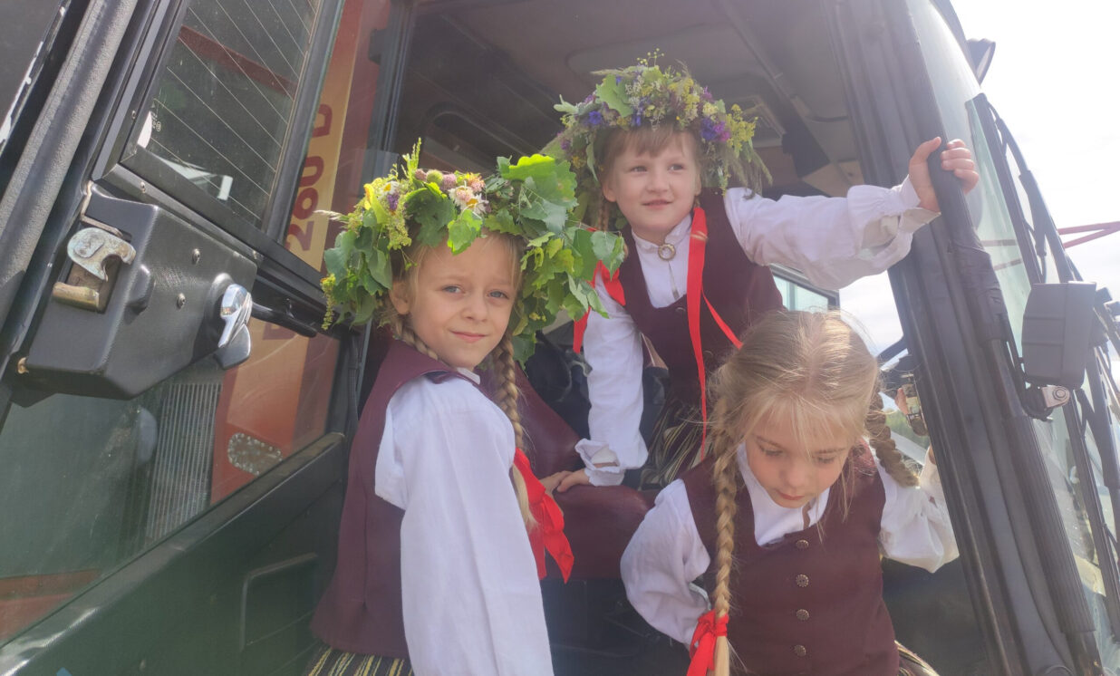No mazajiem līgotājiem katra iestāde saņēma pašsacerētu aplīgošanas dziesmu un kuplu jāņuzāļu pušķi.