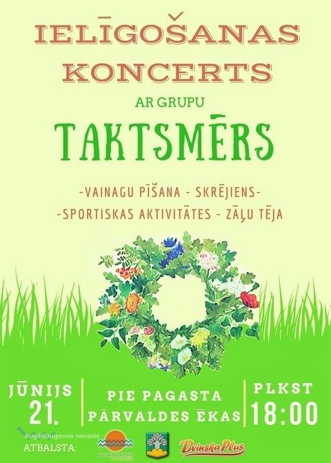 Medumu TN aicina uz ielīgošanas pasākumu, kas notiks 21. jūnijā plkst.18.00 laukumā pie pagasta pārvaldes. Programmā: svētku koncerts ar jauniešu mūzikas grupu "Taktsmērs", Līgo vainagu pīšana, skrējiens vainagos, karsta zāļu tēja un sporta aktivitātes. Laipni aicināti visi interesenti!