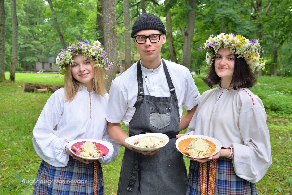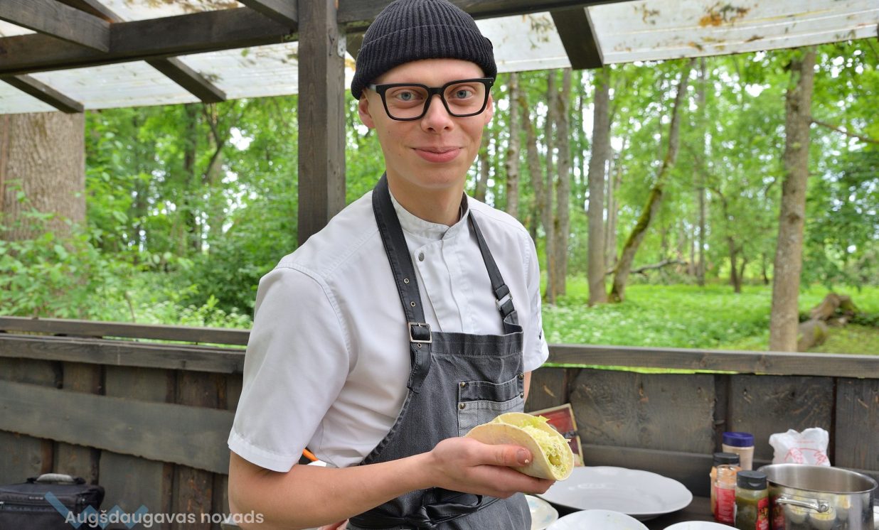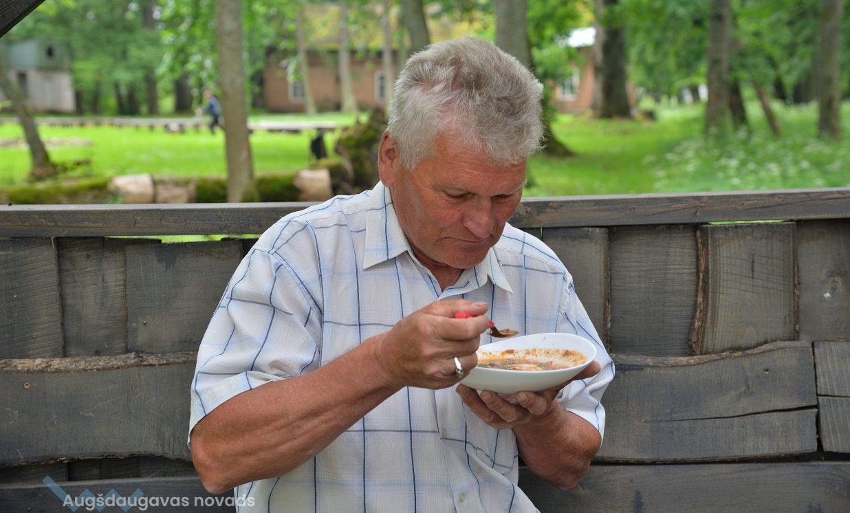 Pasākuma turpinājumā viesi tika aicināti uz Skrindu dzimtas muzeja kulinārā mantojuma telpu, kur rosījās profesionāls pavārs, kalupietis Haralds Saušs, gatavojot viesiem neparastu cienastu.