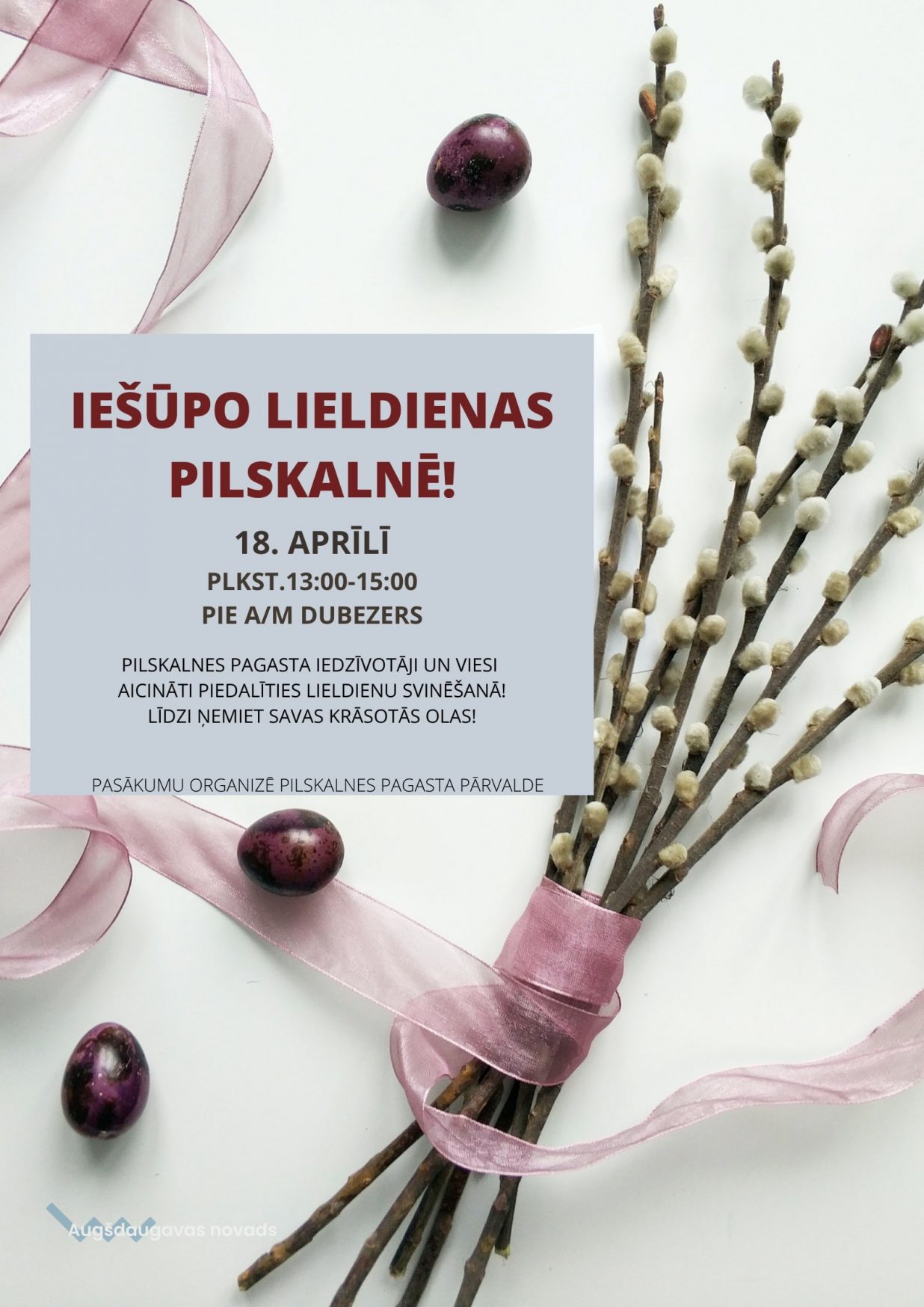 18. aprīlī plkst. 13.00 - 15.00 pie A/M "Dubezers" Pilskalnes pagasta iedzīvotāji un viesi tiek aicināti piedalīties Lieldienu svinēšanā!