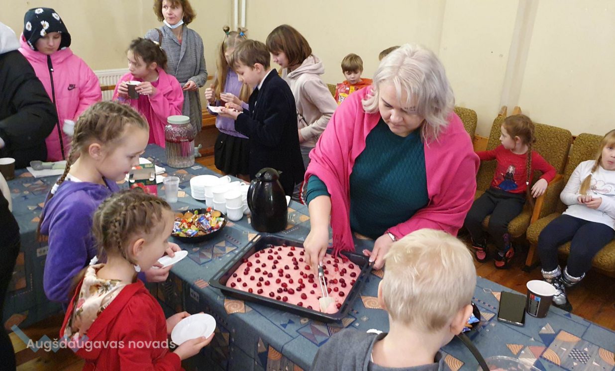 Otrā pasākuma daļa sākas ar sveču liešanu, jo tā ir galvenā aktivitāte Sveču dienā, kas nes maģisko spēku. Sveces “mērcējām” dabīgā bišu vaskā, kā arī lējām no parafīna, pievienojot klāt sausus ziedus un aromātiskās eļļas. Arī bija iespēja uztaisīt svecītes “Papjē mašē” tehnikā. Bet pie maģiskās burves izveidojās gara rinda, kura ar sveces palīdzību stāstīja, kas sagaidīs šajā gadā. Un nobeigumā visi cienājās ar saldumiem, tēju un tradicionālo debessmannu ar dzērvenēm, lai ir skaistums un sārti vaigi!