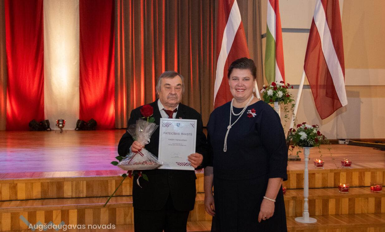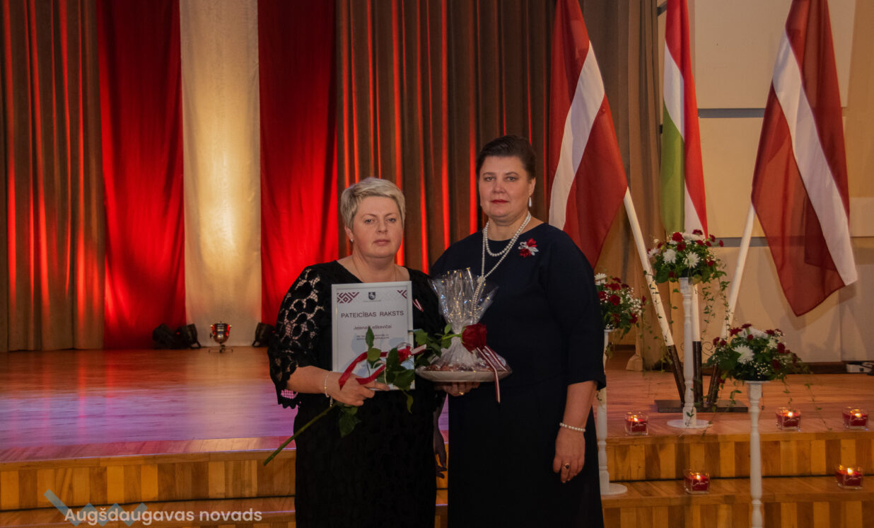 Ilūkstes apvienības pārvaldes vadītāja Ruta Buldure un Augšdaugavas novada pašvaldības priekšsēdētājs Vitālijs Aizbalts svinīgi pasniedza Pateicības rakstus Ilūkstes puses iedzīvotājiem, kuru darbs ir nozīmīgs ieguldījums iedzīvotāju dzīves kvalitātes uzlabošanā un pašvaldības attīstībā.