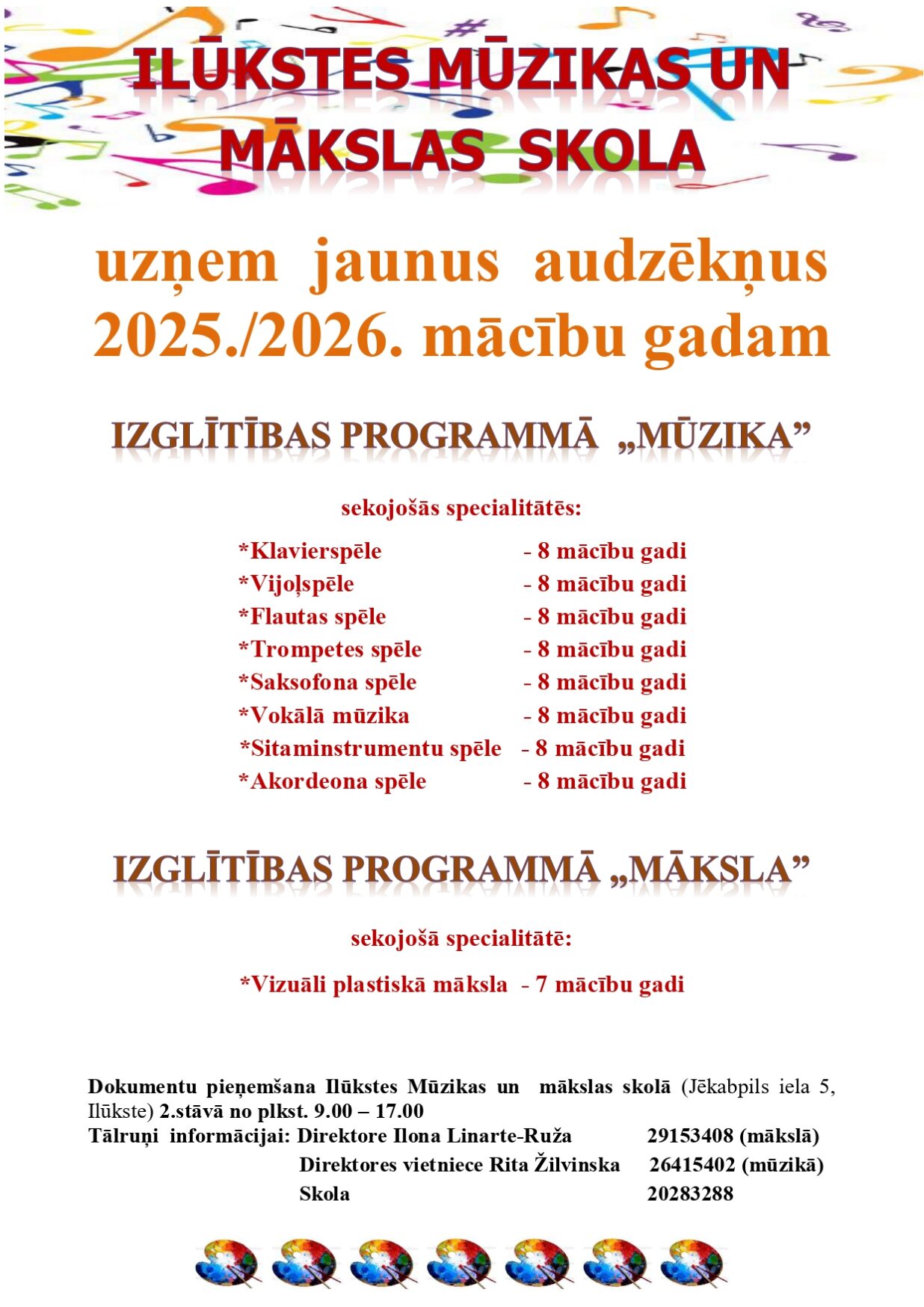 Ilūkstes Mūzikas un mākslas skola uzsāk izglītojamo uzņemšanu 2025./2026. mācību gadam22.08.2025AKTUĀLI