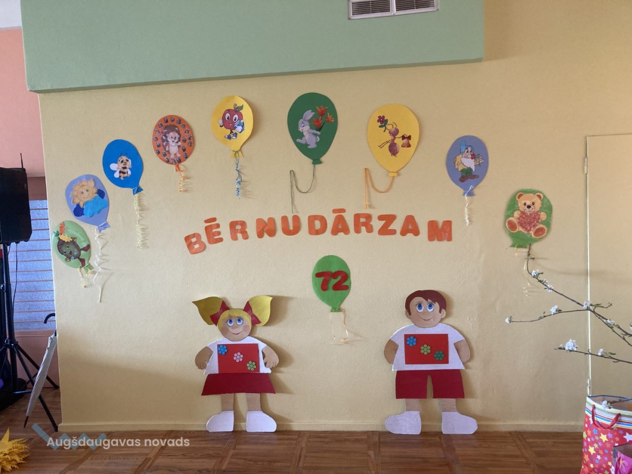 Mūsu mīļajam bērnudārzam “Zvaniņš” šogad apritēja 72. gadi. Tāpēc 26. aprīlī lielie un mazie bērnudārza bērni, ka arī iestādes darbinieki pulcējās zālē uz svētku ballīti. Ballīti ar savu pavasarīgi muzikālo priekšnesumu atklāja Bērnu un jauniešu centra pop-grupa “Varavīksne” (sk. Ona Lapa). Par svētku vadīšanu, noskaņu un jautrību parūpējās multfilmu tēli - Fiona (sk. I. Kūliņa), Šreks (vadītājas vietniece izglītības jomā V. Vanagele) un Mikipele (I. Grigorjevs). Katra grupiņa bija sagatavojusi priekšnesumus, kas saistīti ar grupas nosaukumu. Tās bija jautrās dejas, skanīgas dziesmas, teātra uzvedumi, ko palīdzēja sagatavot mūzikas skolotāja O. Lapa. Visu grupiņu bērni rotājās ar košiem tērpiem un aksesuāriem. Sporta skolotāja L. Millere piedāvāja visiem izkustēties aktīvā rotaļā. Šogad bērni ballītē saņēma garšīgos augļus ar ko turpināja cienāties grupiņās visas dienas garumā. Ballītes noslēgumā bija iespēja nofotografēties kopā ar multfilmu tēliem.
