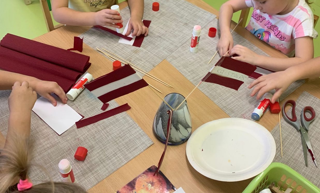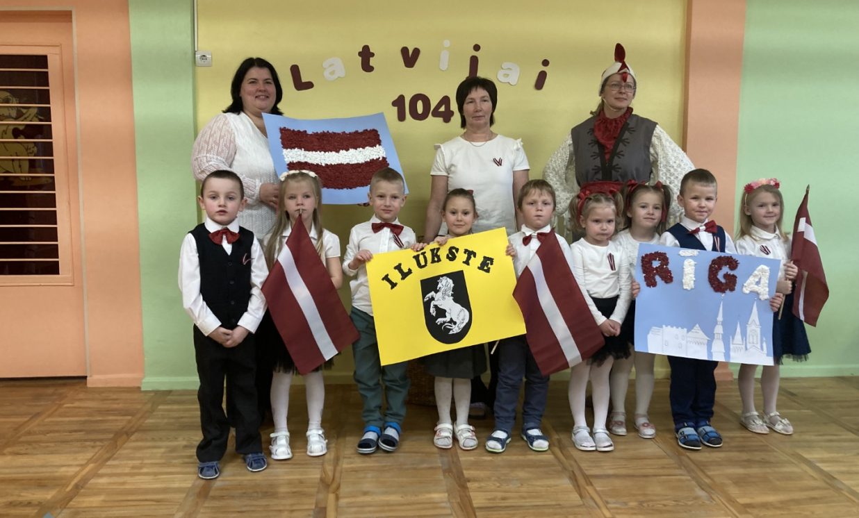 Pirms svētkiem, visas nedēļas garumā, bērni darbojās un veidoja kolektīvos darbus, kuros atspoguļotas Latviju raksturojošas lietas – mūsu valsts kontūra, karogs, Daugava, nacionālie simboli, latvju zīmes, Rīgas siluets un arī Ilūkstes ģērbonis.