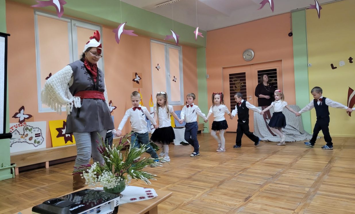 Bērnu zināšanas par Latviju uzklausīja saimniece (skolotāja Valentīna Petrovska) un gailis (skolotāja Vita Kraukle)